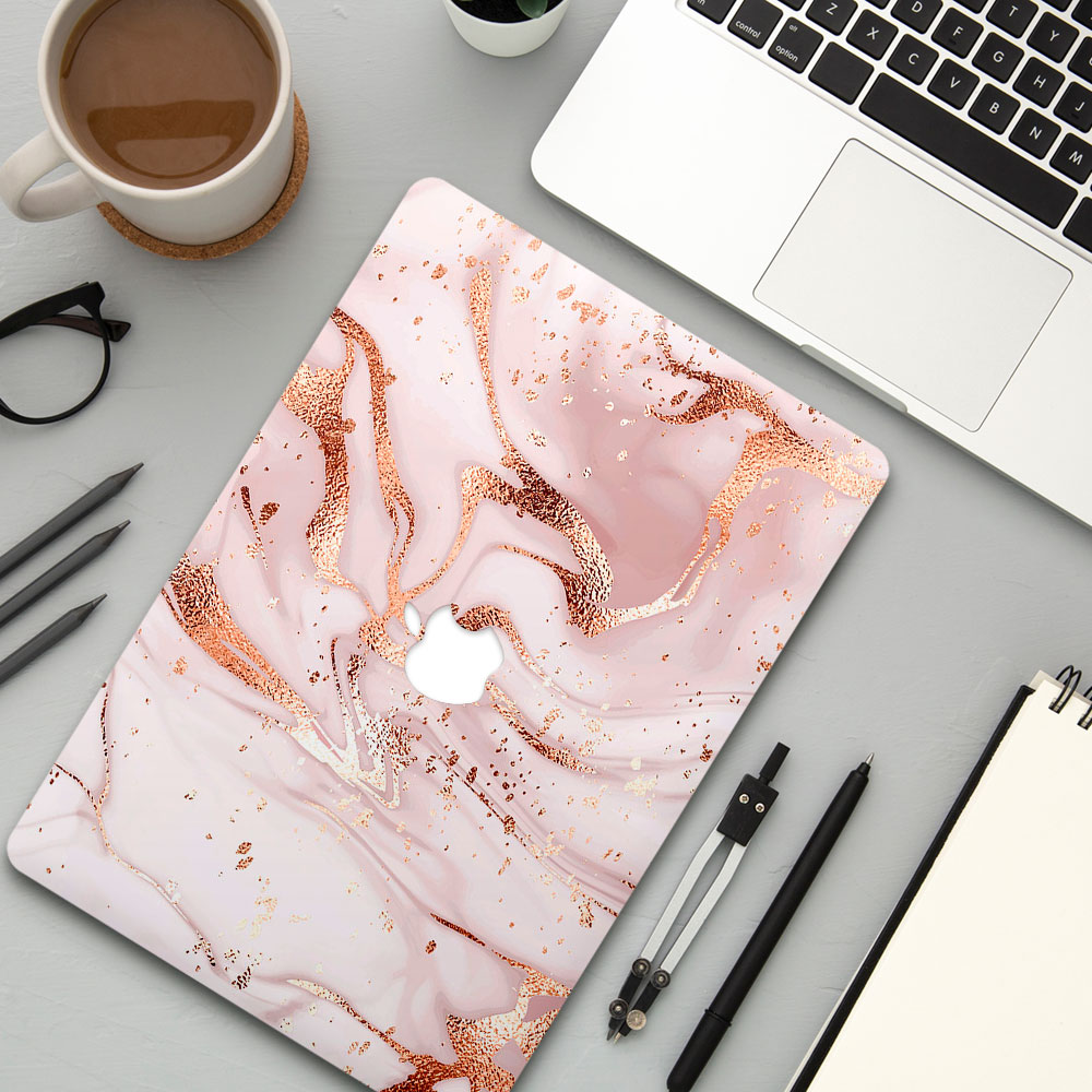 藕色仿金邊大理石 MacBook Air Pro 防刮保護殼
