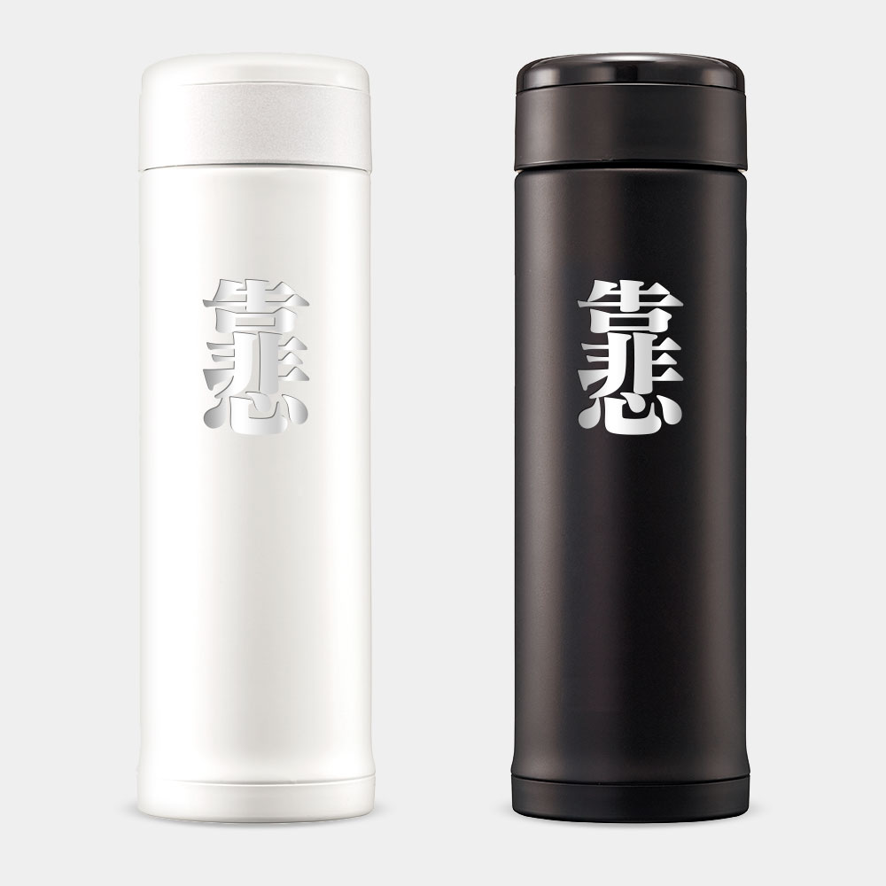 雷雕後會將瓶身原本的烤漆去除,露出原本不鏽鋼的底色,只能雕單色的圖案或文字