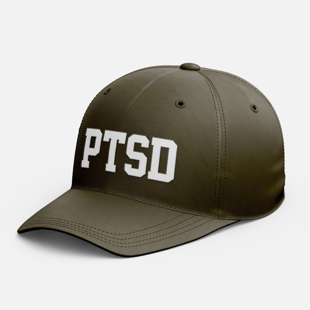 PTSD(文字可客製化) 六片式金屬調節電繡棒球帽