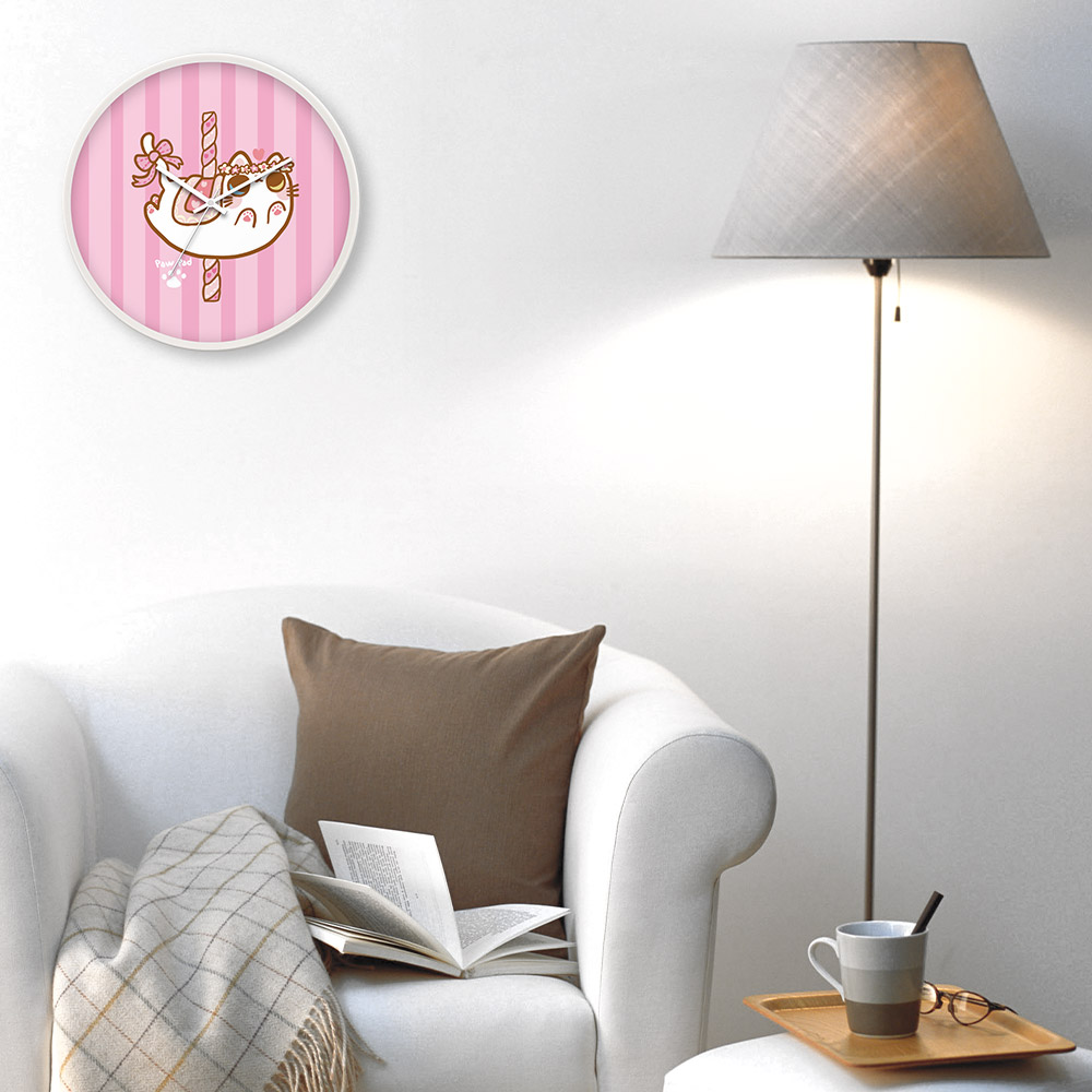 旋轉木貓-異色瞳白貓肉肉 台灣製靜音掃描創意掛鐘