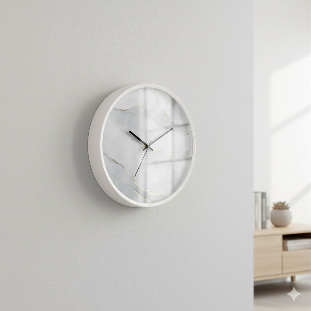 仿金邊大理石 台灣製靜音掃描創意掛鐘