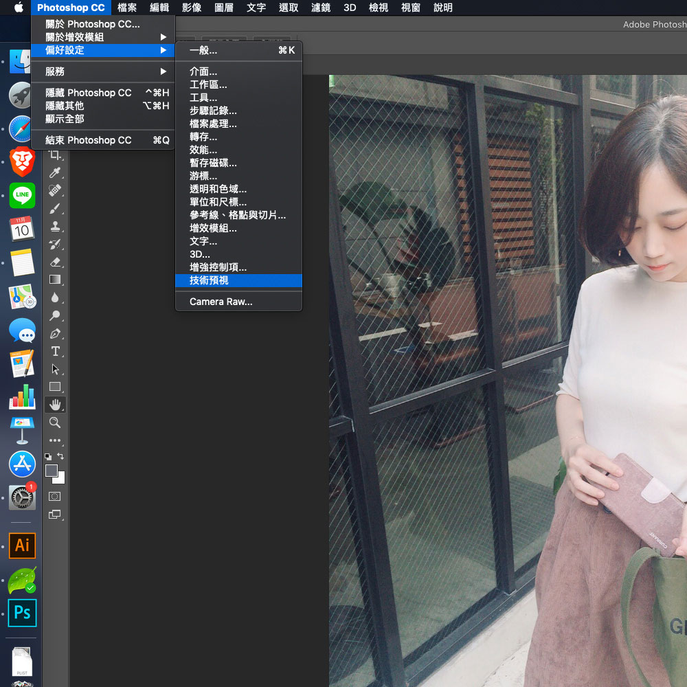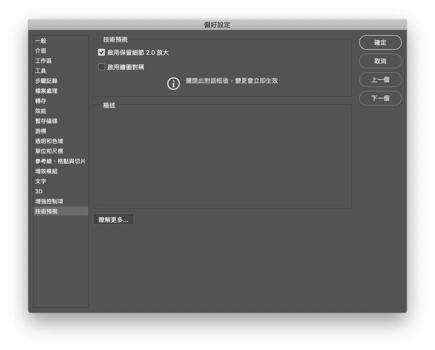 你可以在Photoshop的偏好設定開啟技術預視的設定面板