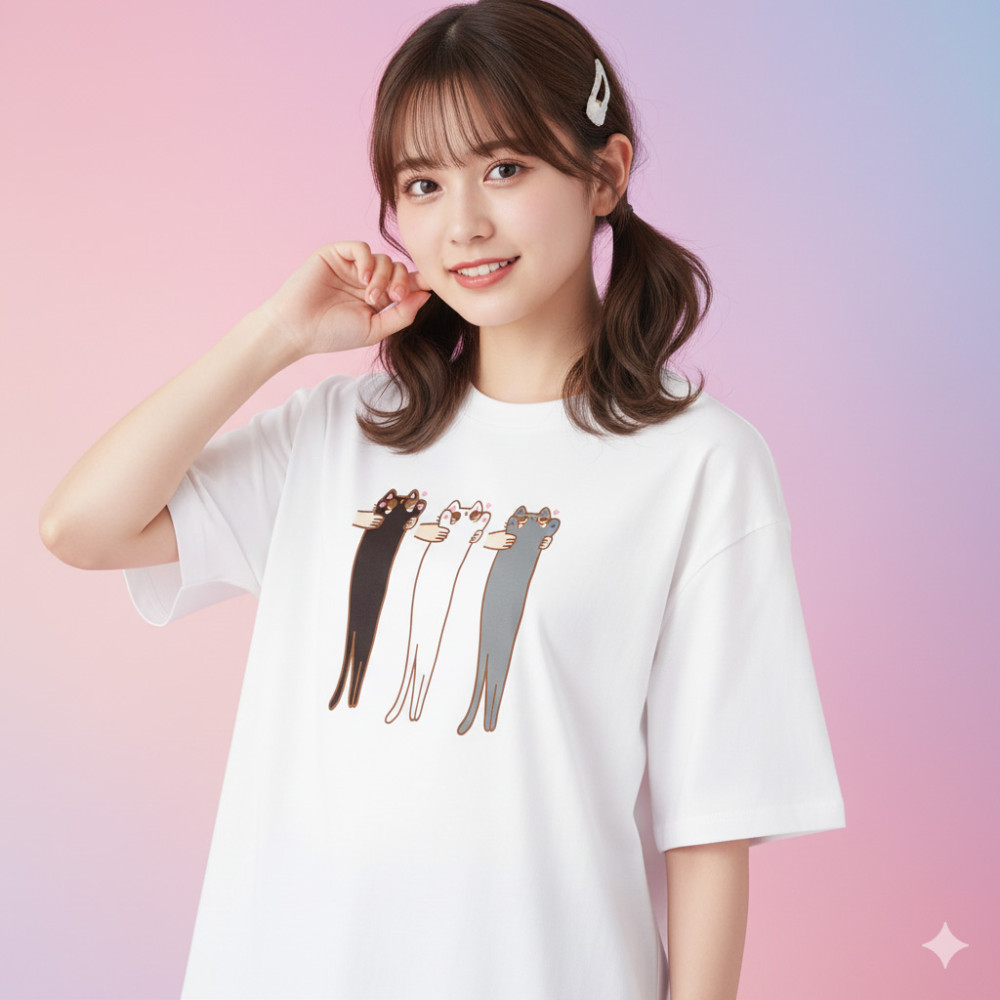 三隻長長貓 Part2 日本 Printstar 韓版落肩 T-shirt 共 4 種尺寸