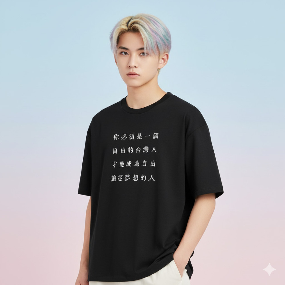 自由的台灣人(客製化文字) 日本 Printstar 韓版落肩 T-shirt 共 4 種尺寸