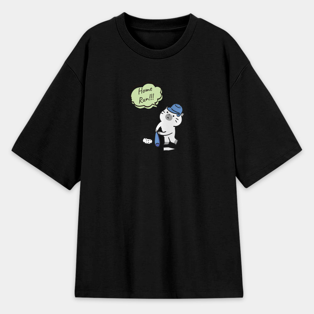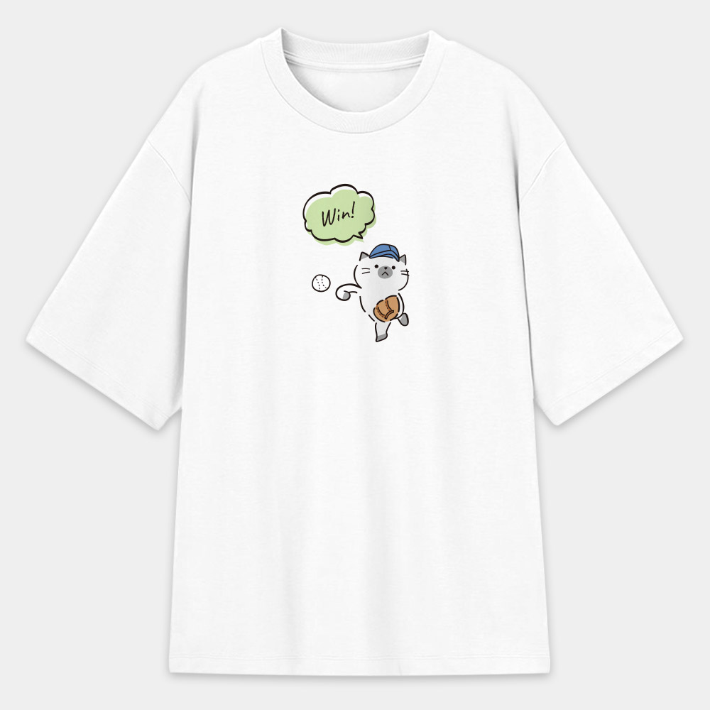 貓咪棒球 (可客製化文字) 日本 Printstar 韓版落肩 T-shirt 共 4 種尺寸