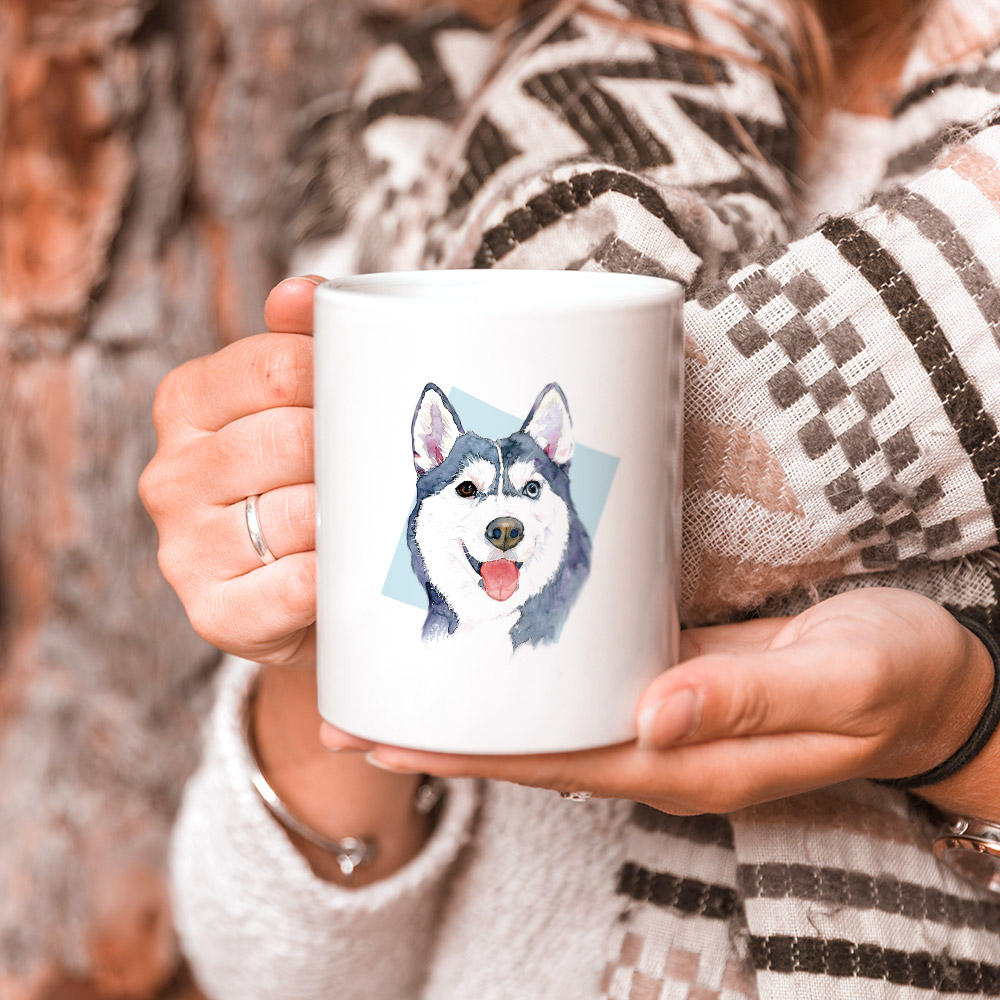暖心水彩-哈士奇 馬克杯+杯墊組 聖誕 生日 畢業 最佳交換禮物