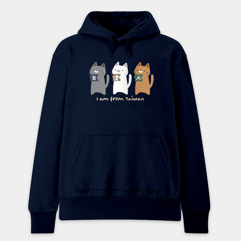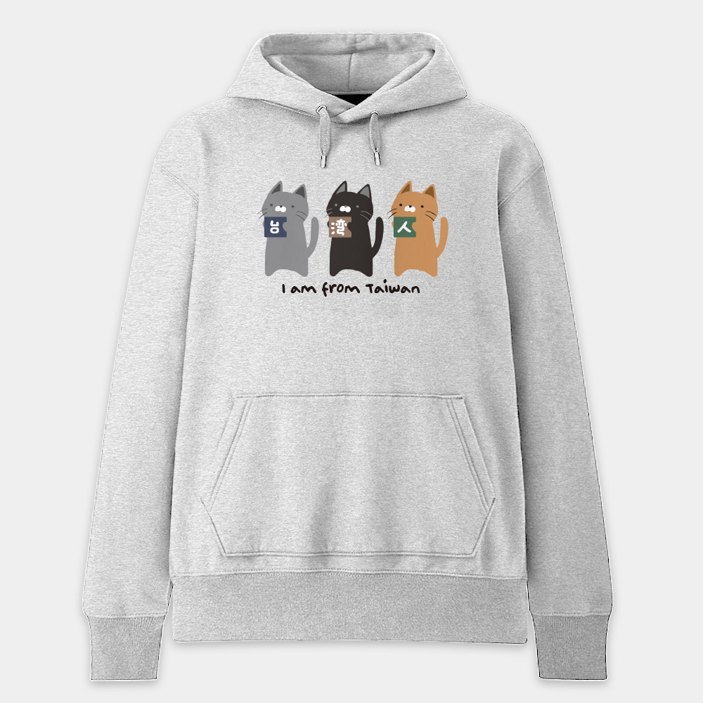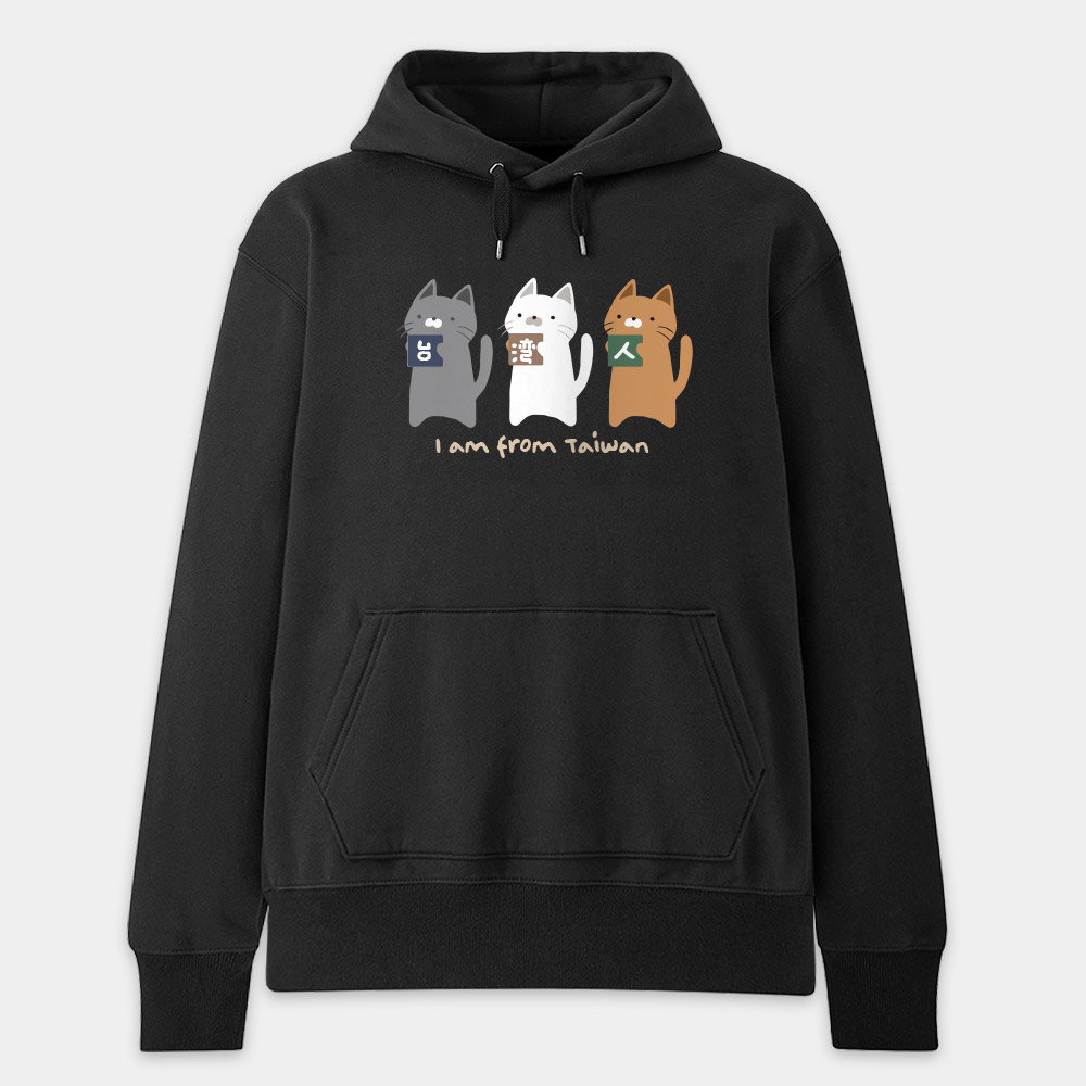 這款 T-shirt 將台灣人的身份認同與超萌的貓咪完美結合!圖案設計精巧,由三隻不同花色的可愛貓咪——個性灰、經典黑與活潑橘,分別抱著印有「台」、「灣」、「人」三個漢字的色塊,展現出台灣人團結又親切的精神。 底部的 "I am from Taiwan" 採用了富有溫度的手寫感字體,整體風格不僅清新自然,更帶有一種溫暖的插畫質感。對於喜歡貓咪、熱愛台灣,或是準備出國旅遊、交流的朋友來說,這不僅是一件衣服,更是最溫馨的自我介紹。