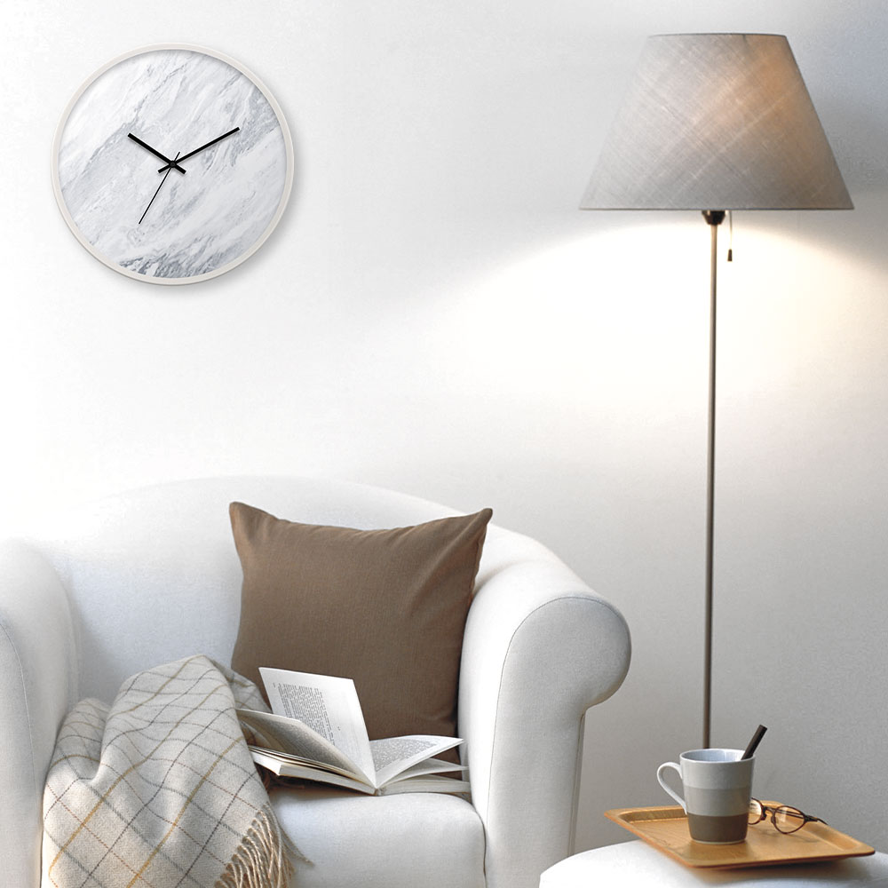 白色大理石 台灣製靜音掃描創意掛鐘