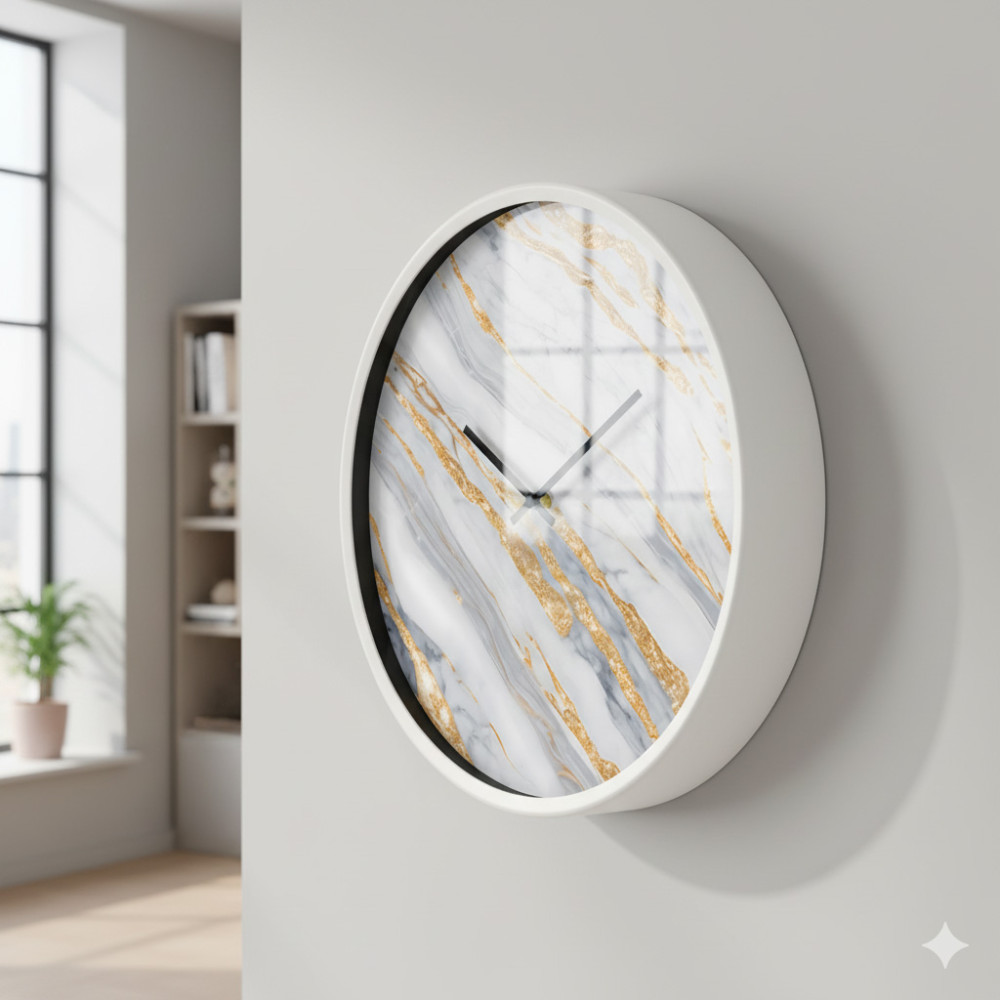 灰金大理石 台灣製靜音掃描創意掛鐘