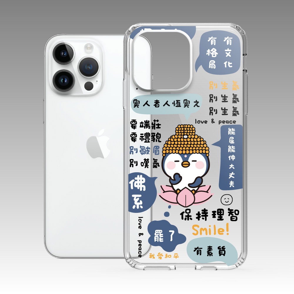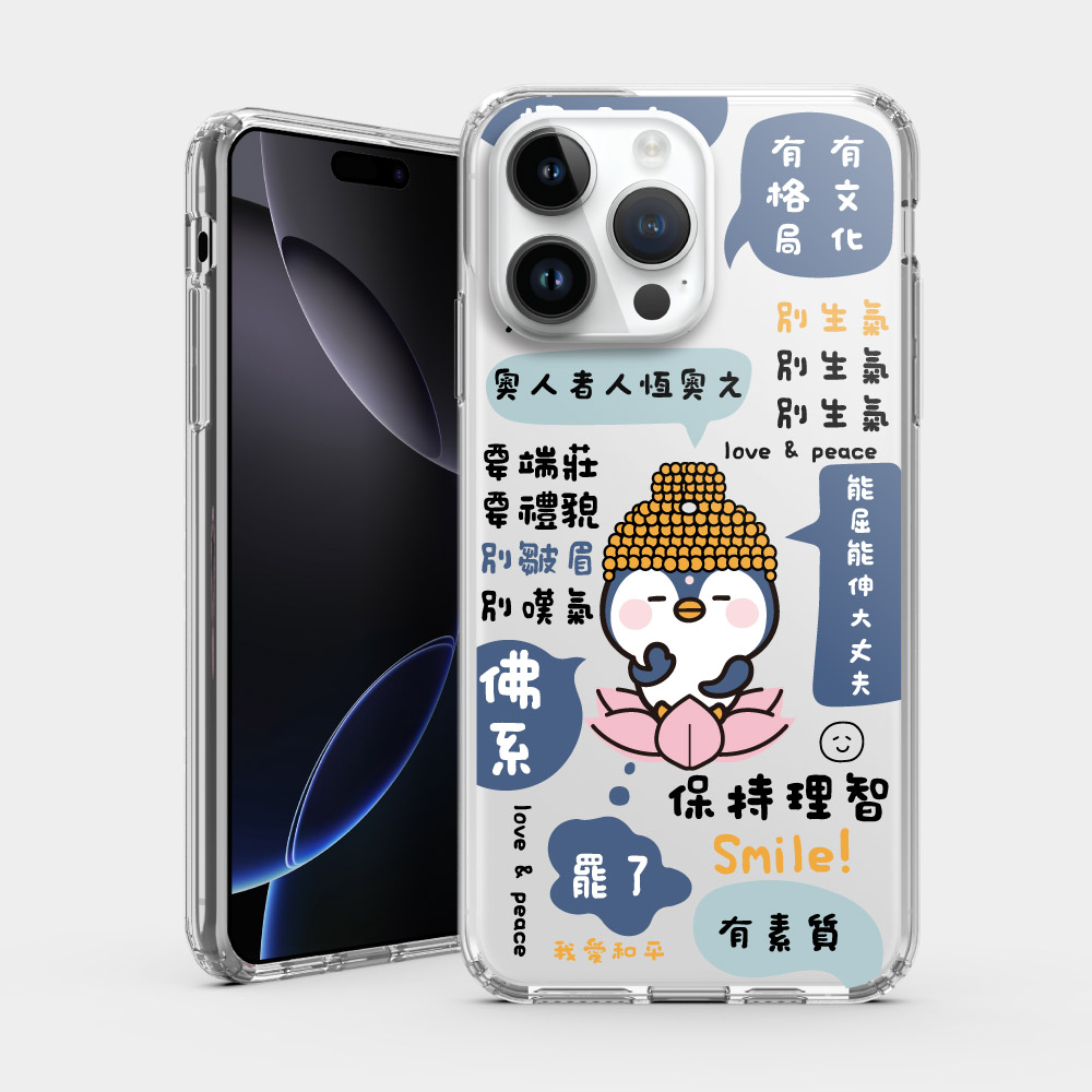 企鵝菩薩 厭世語錄 iPhone 耐衝擊保護殼+手機掛繩