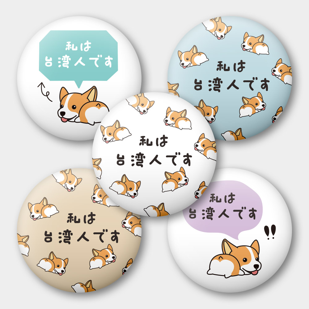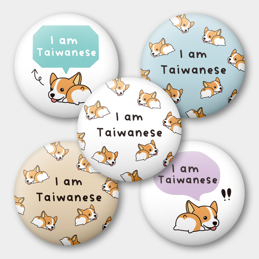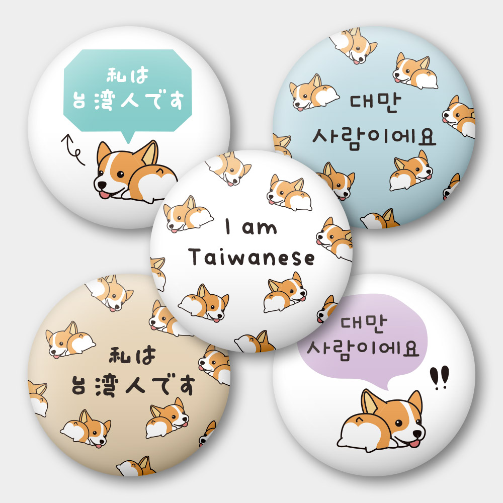 出國必備!我是台灣人 柯基 58mm 胸章 磁鐵 鑰匙圈 5 件套組