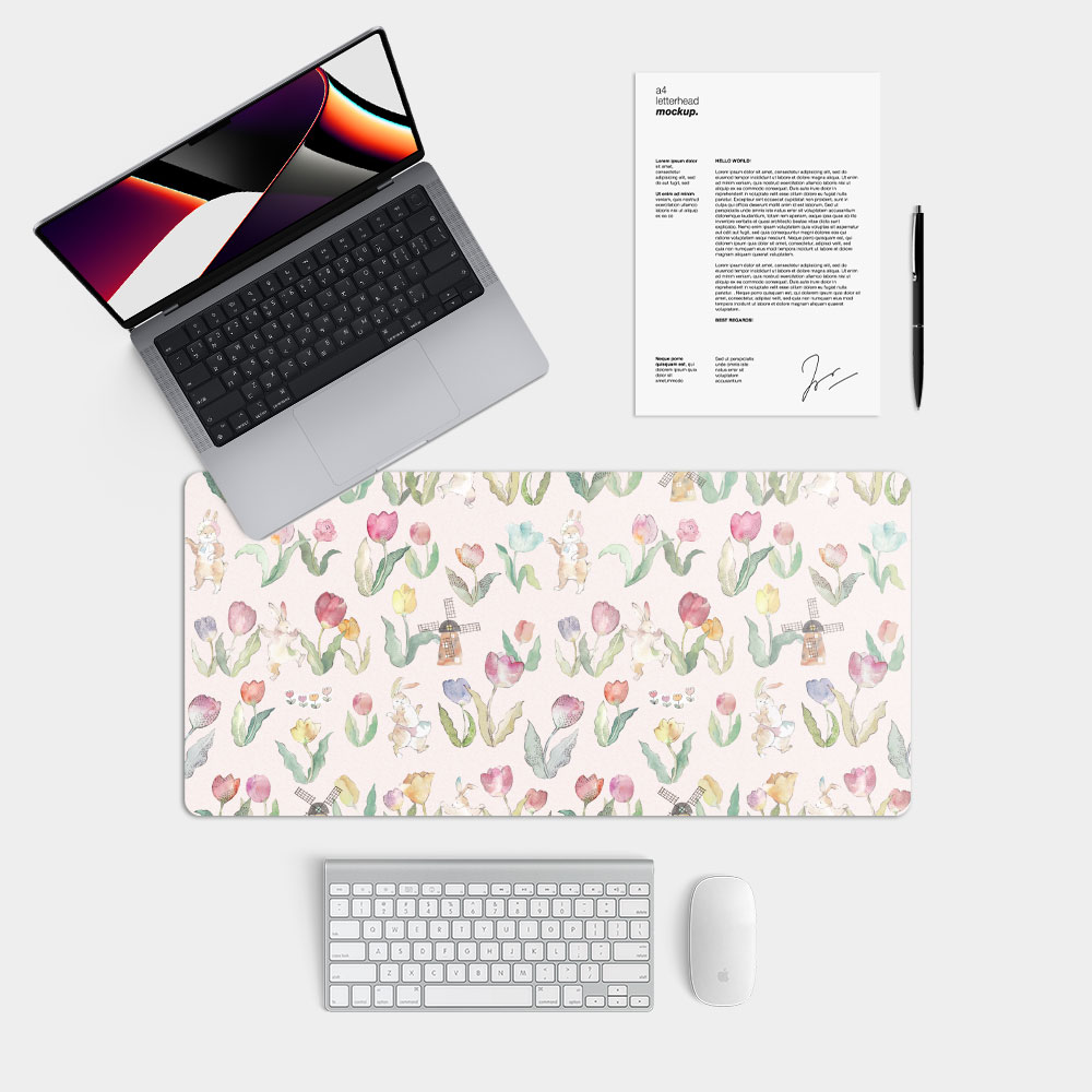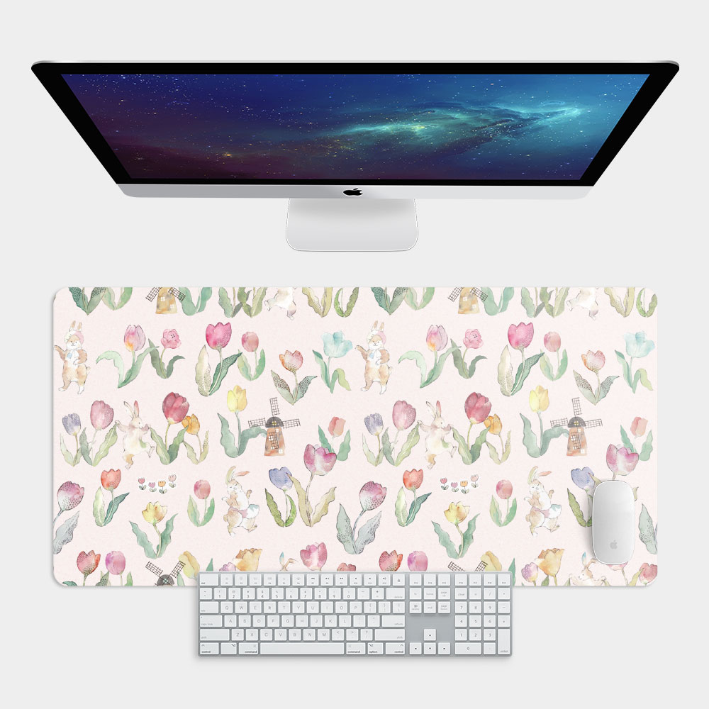 FLOWER DANCE 花之舞鬱金香粉色 台灣製大尺寸電競滑鼠墊 遊戲辦公最佳良品