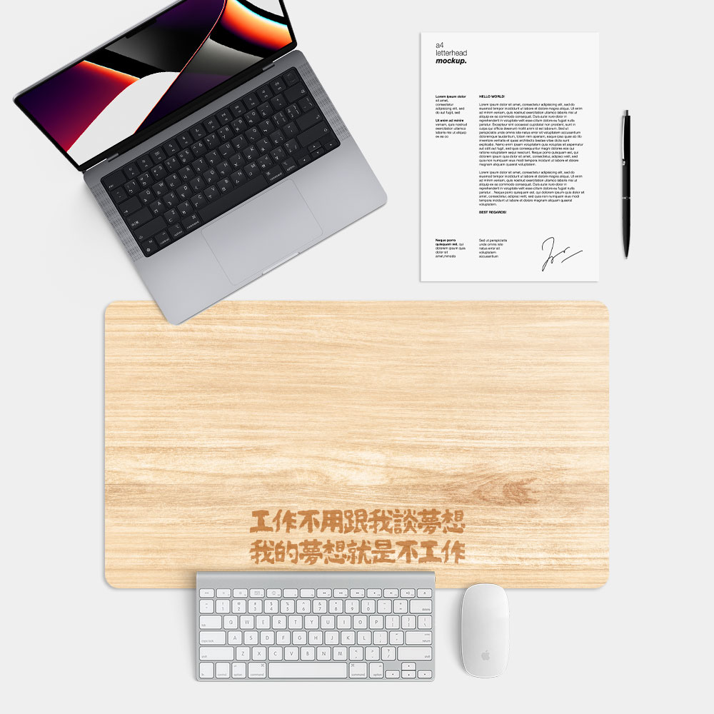 淺色木紋 我的夢想 客製化文字 台灣製大尺寸電競滑鼠墊 遊戲辦公最佳良品