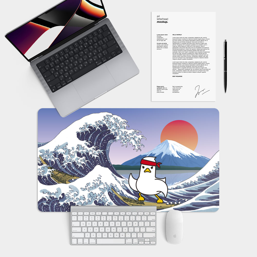 富士山沖浪鴨 台灣製大尺寸電競滑鼠墊 遊戲辦公最佳良品