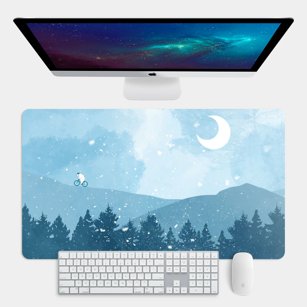 大白熊雪中騎腳踏車 台灣製大尺寸電競滑鼠墊 遊戲辦公最佳良品