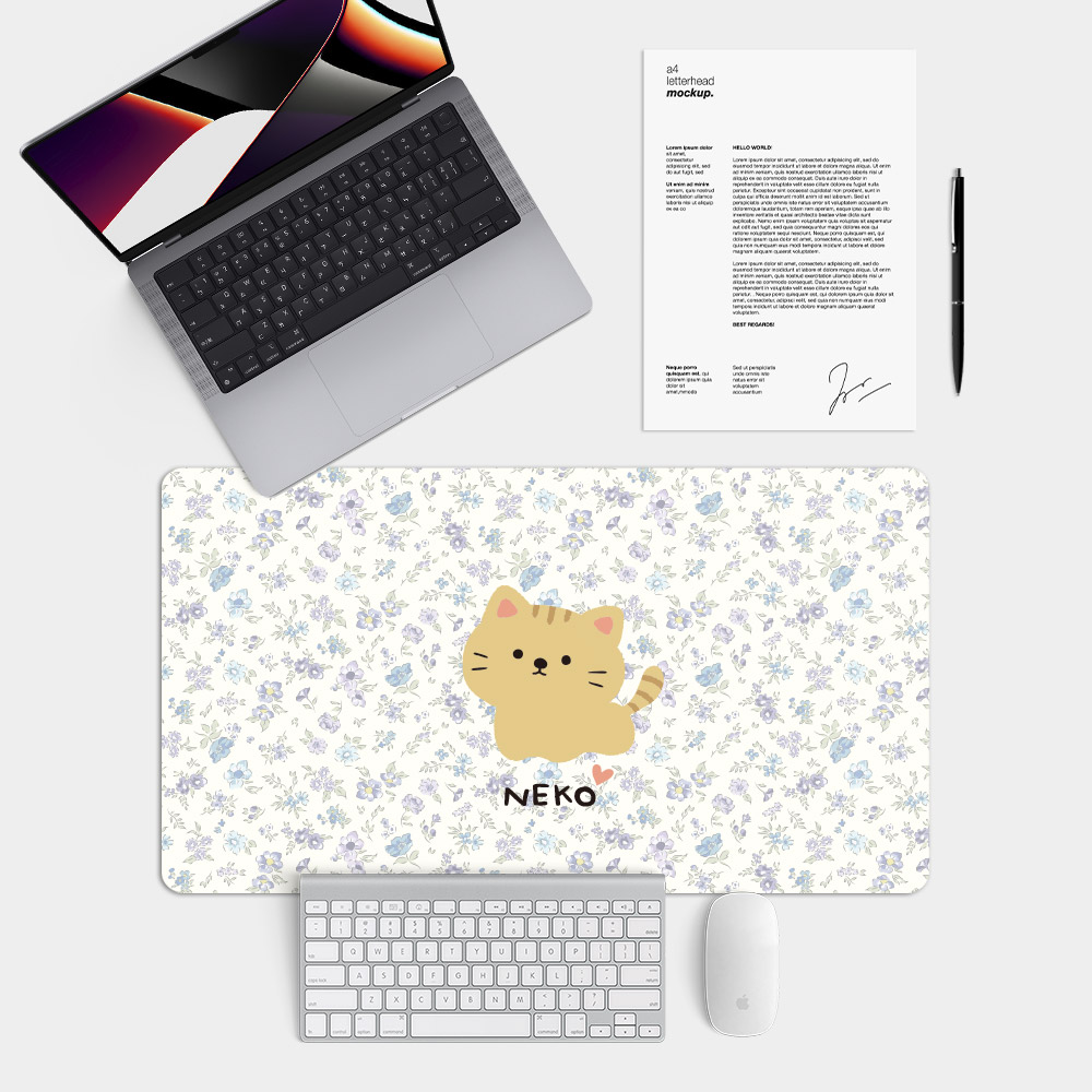 文字可客製化 貓咪滿版碎花 台灣製大尺寸電競滑鼠墊 遊戲辦公最佳良品