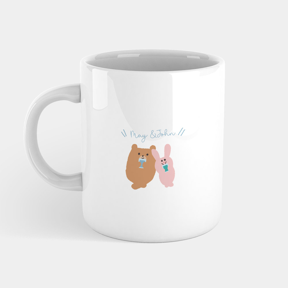 熊熊與兔兔 客製化文字(中英文) 馬克杯+杯墊組 聖誕 生日 畢業 最佳交換禮物
