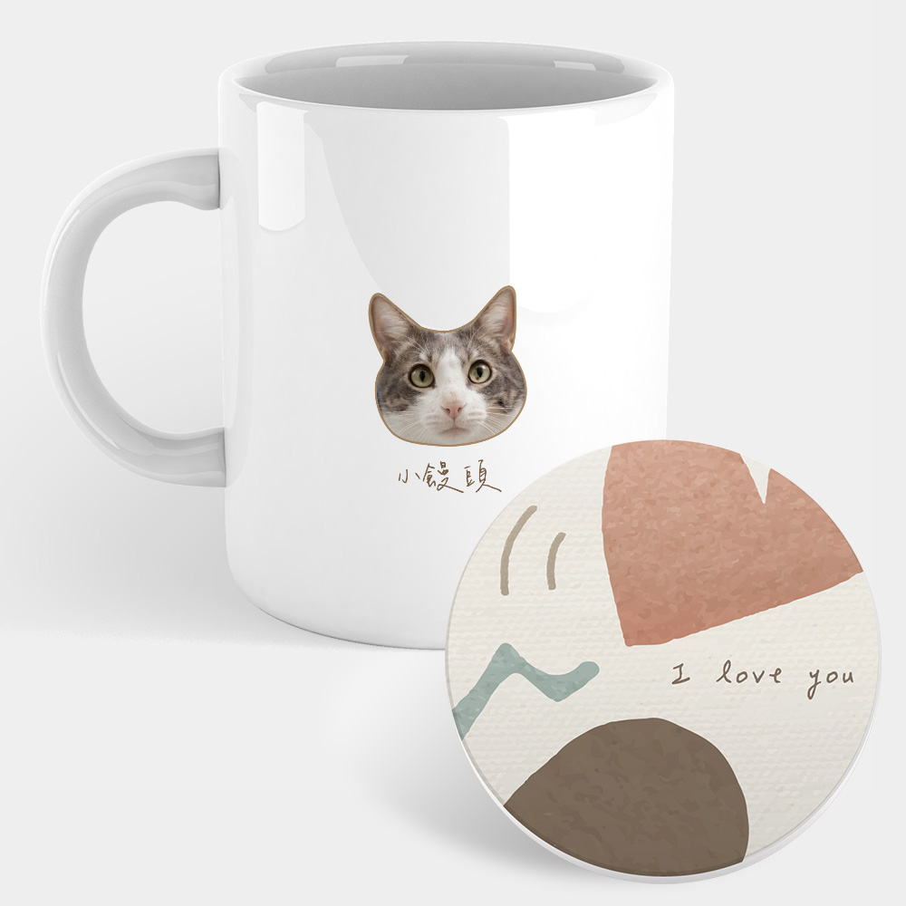 客製化寵物大頭照 馬克杯+杯墊組 聖誕 生日 畢業 最佳交換禮物