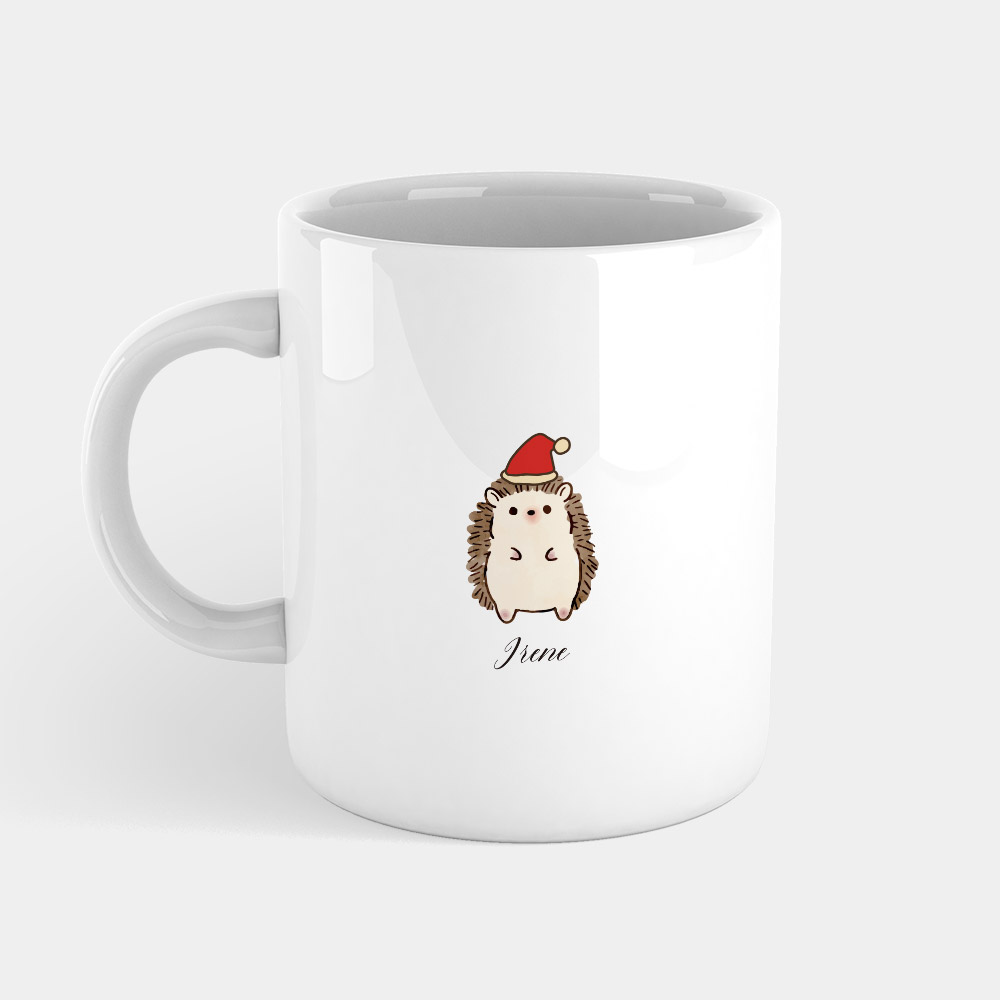 聖誕帽 刺蝟 客製化文字(英文) 馬克杯+杯墊組 聖誕 生日 畢業 最佳交換禮物