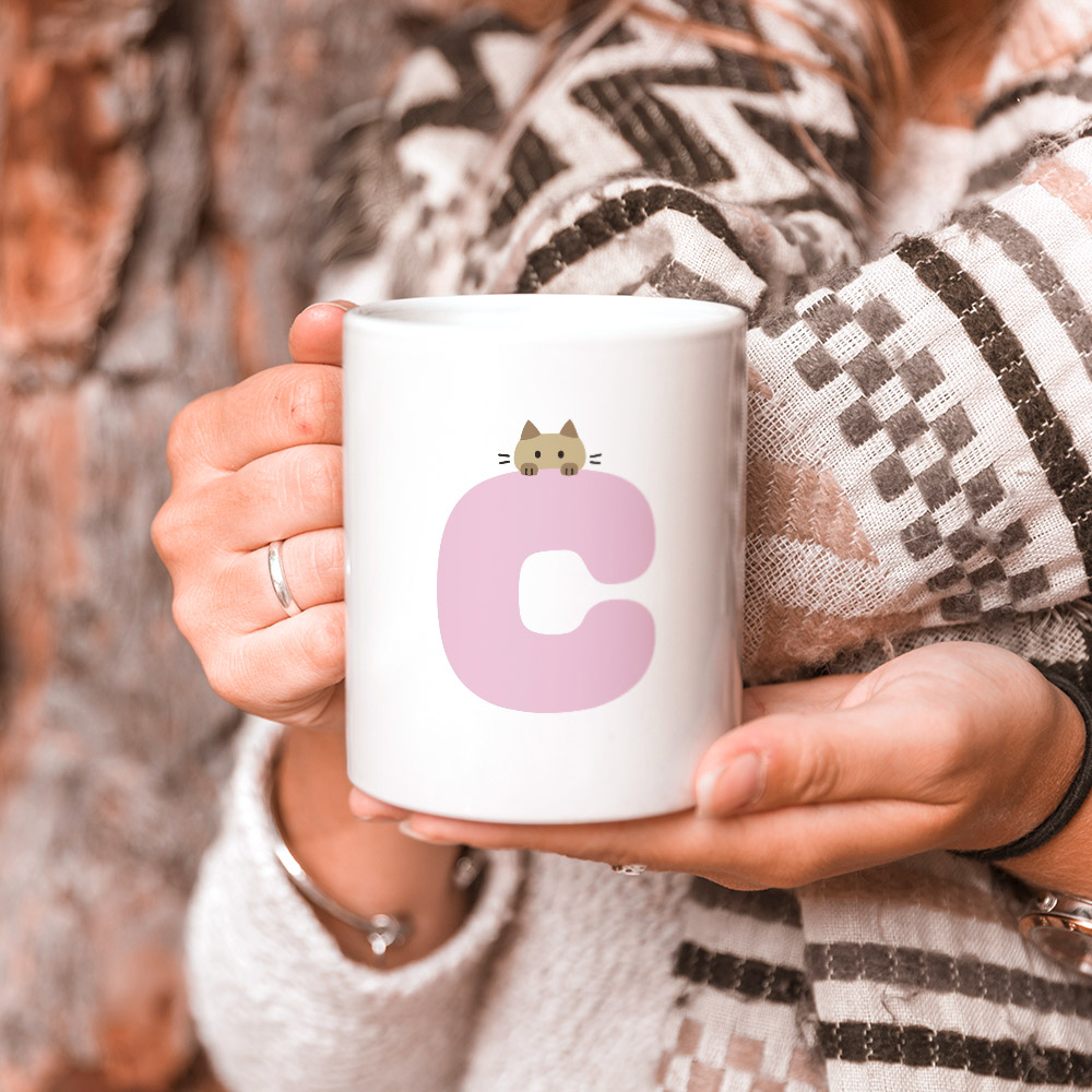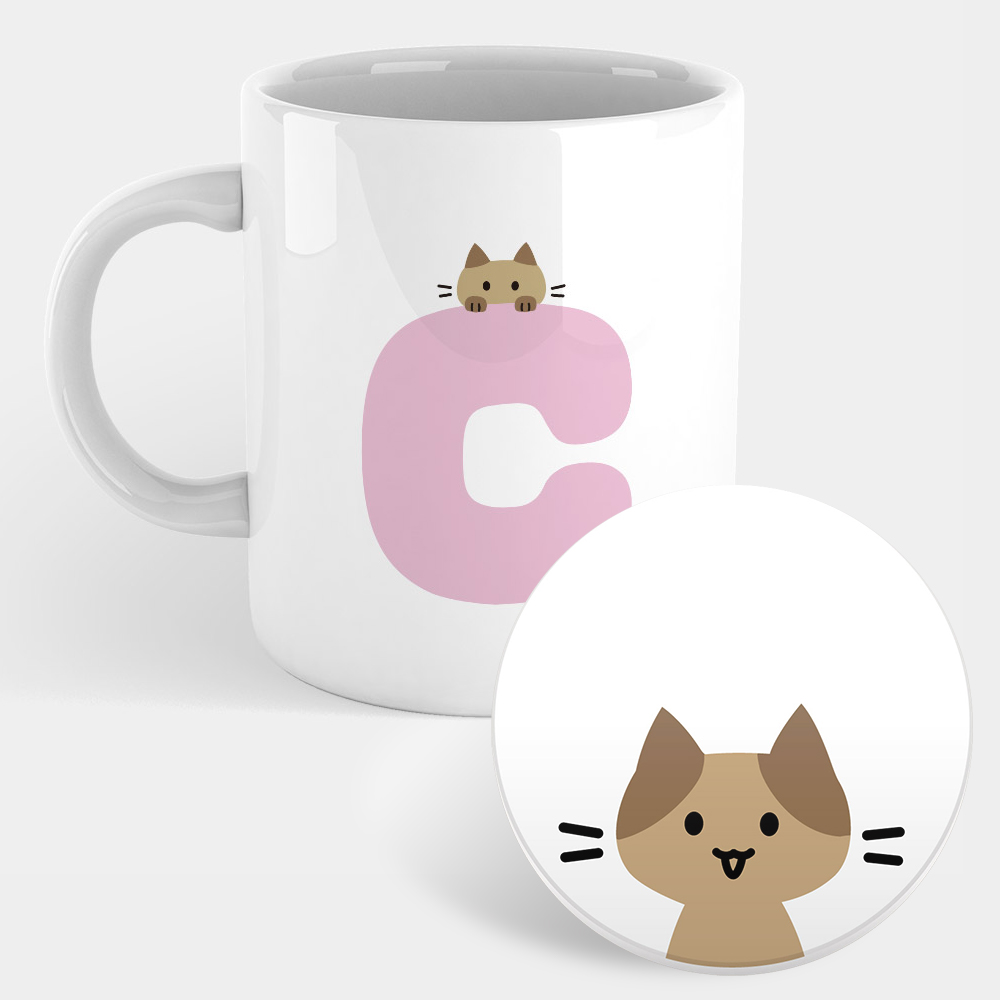 貓咪英文字母C 馬克杯+杯墊組 聖誕 生日 畢業 最佳交換禮物