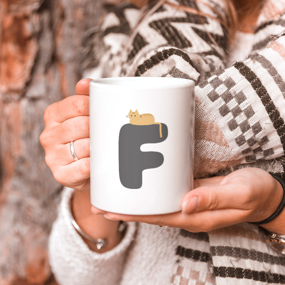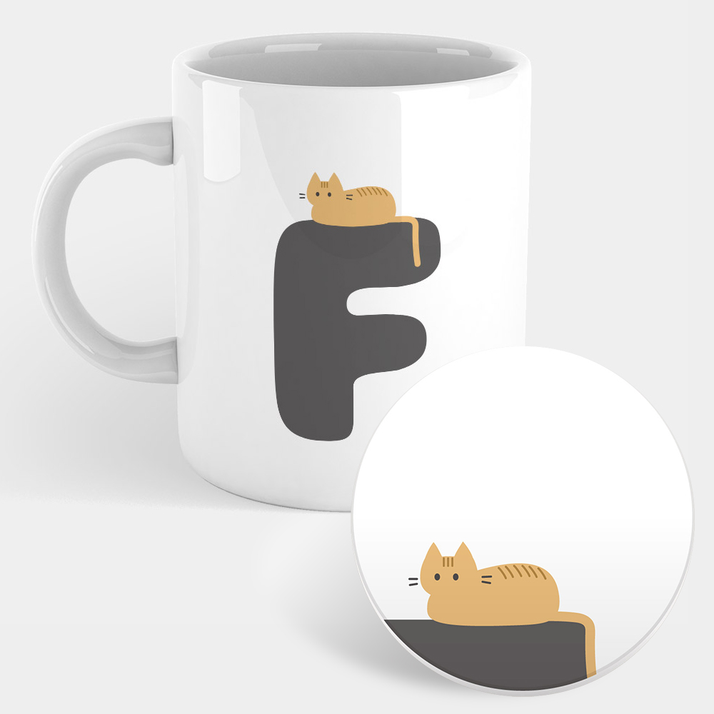貓咪英文字母F 馬克杯+杯墊組 聖誕 生日 畢業 最佳交換禮物