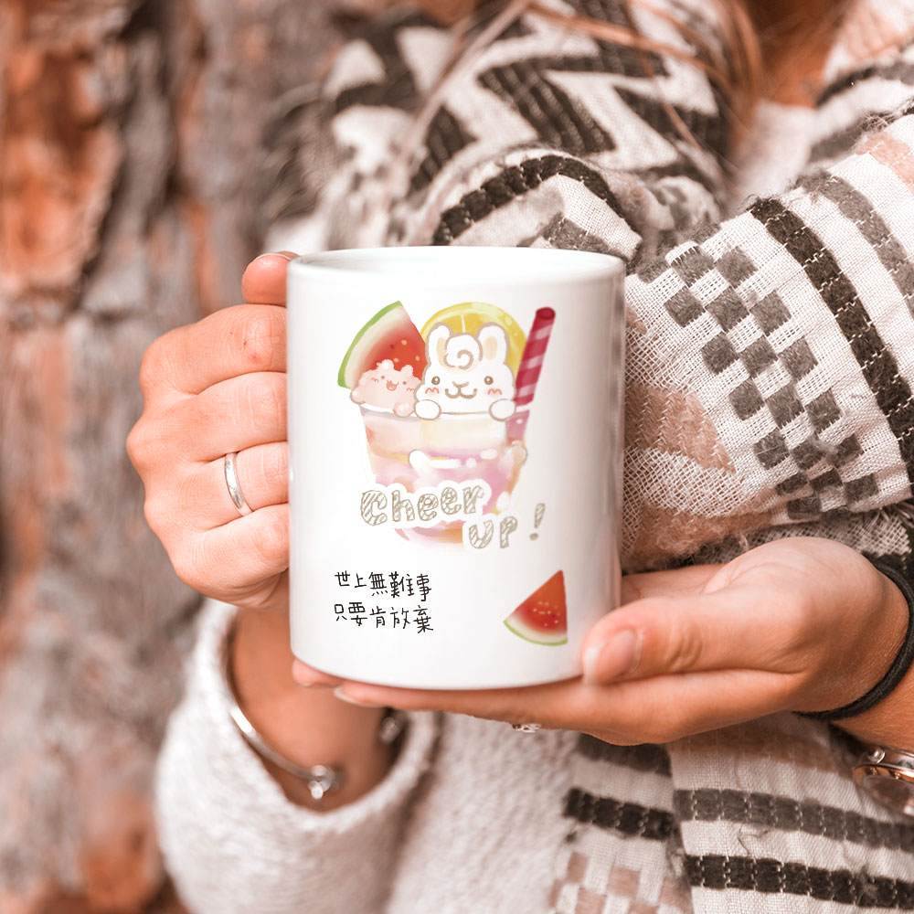 夏日冰球飲料 - 西瓜熱帶水果特調(可客製化座右銘) 馬克杯+杯墊組 聖誕 生日 畢業 最佳交換禮物