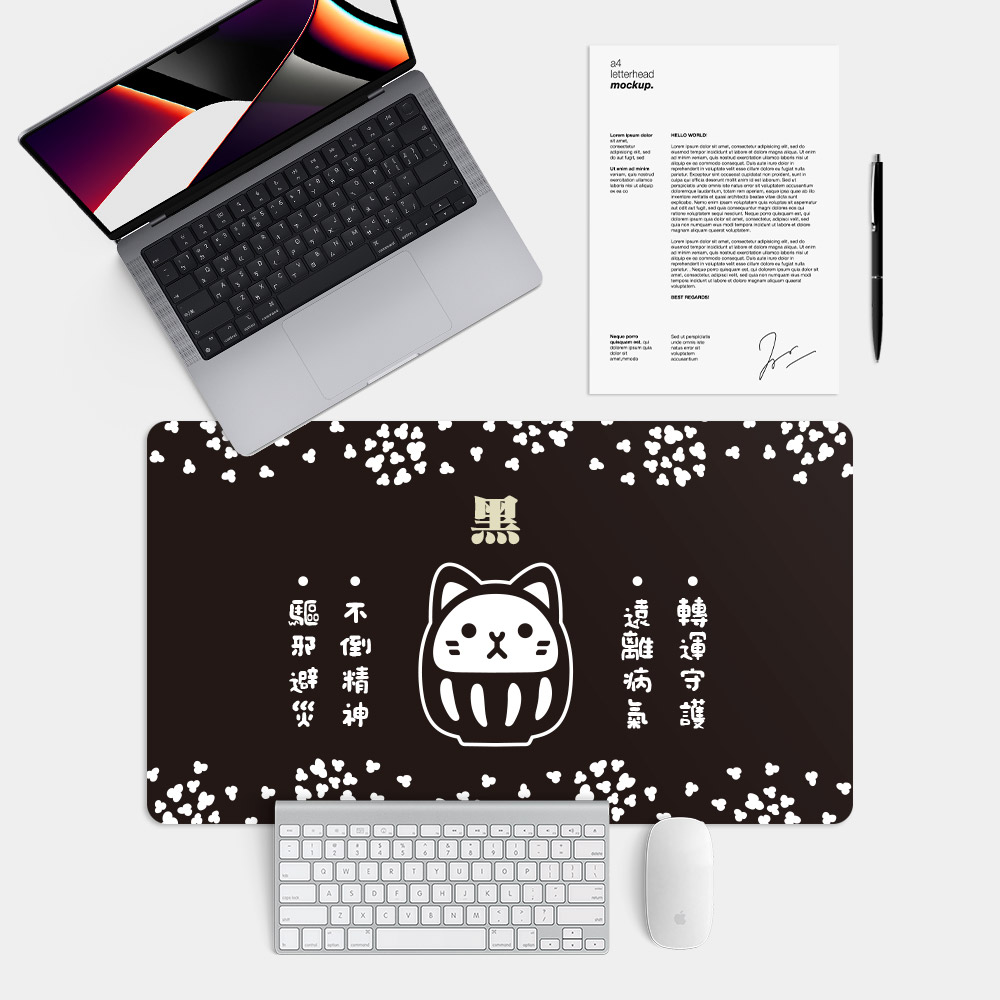 達摩貓 可客製化文字 台灣製大尺寸電競滑鼠墊 遊戲辦公最佳良品