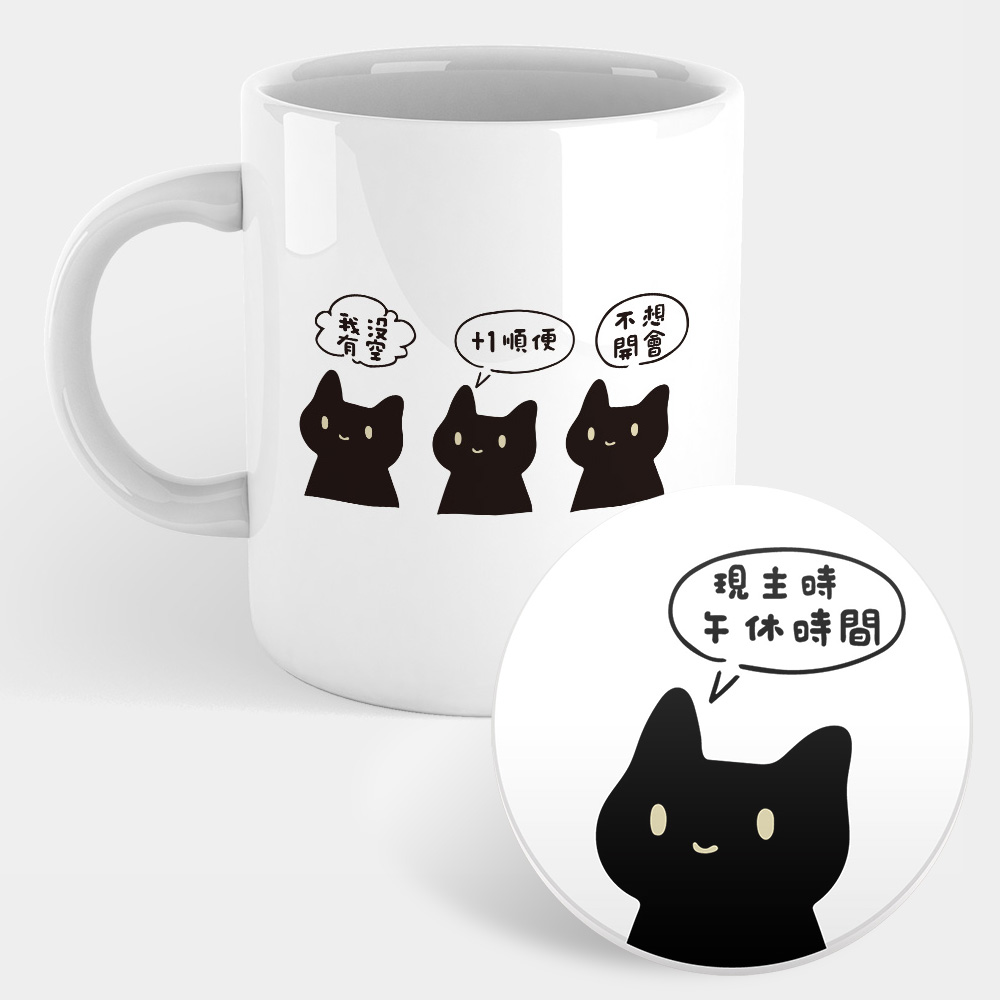 黑貓語錄(可客製化文字) 馬克杯+杯墊組 聖誕 生日 畢業 最佳交換禮物