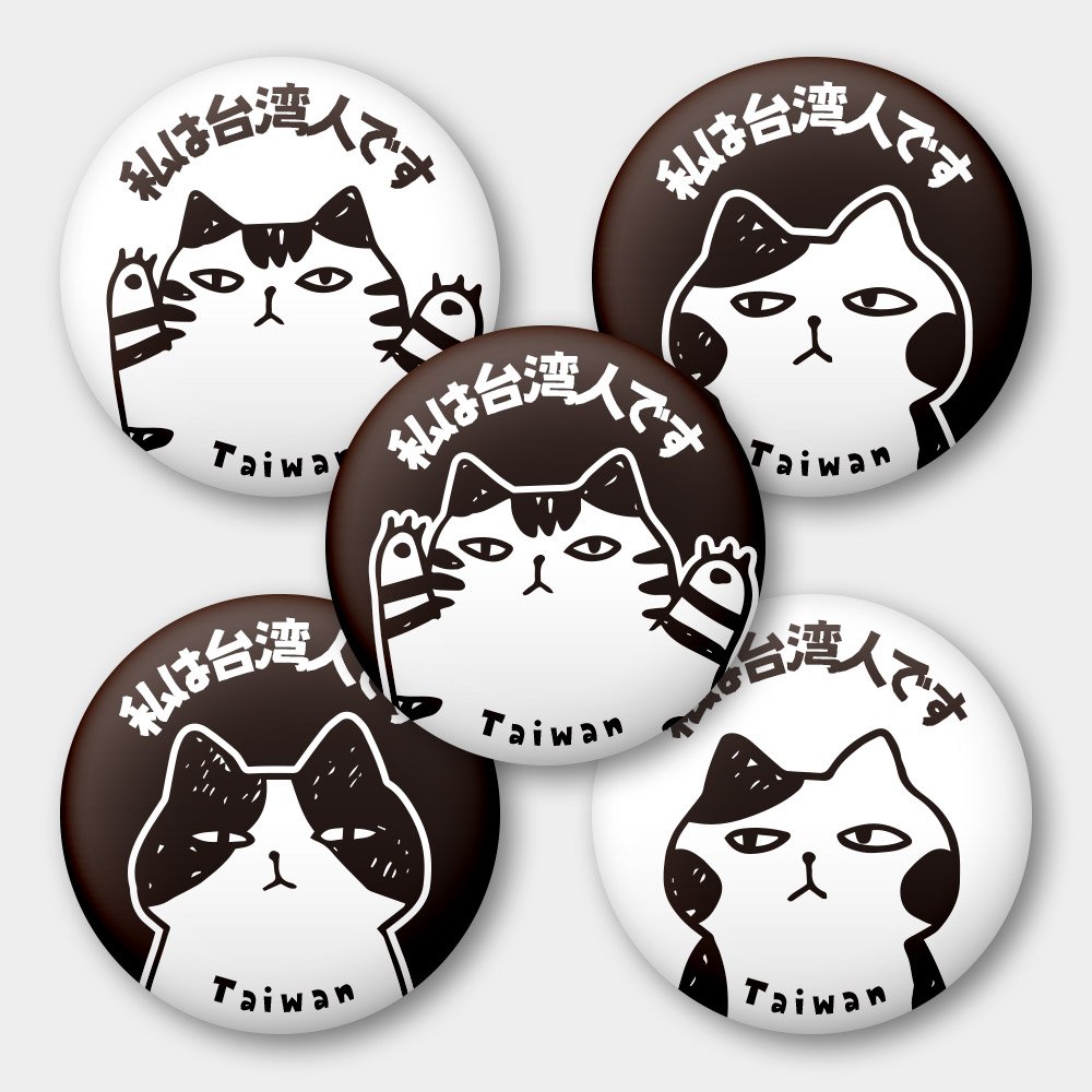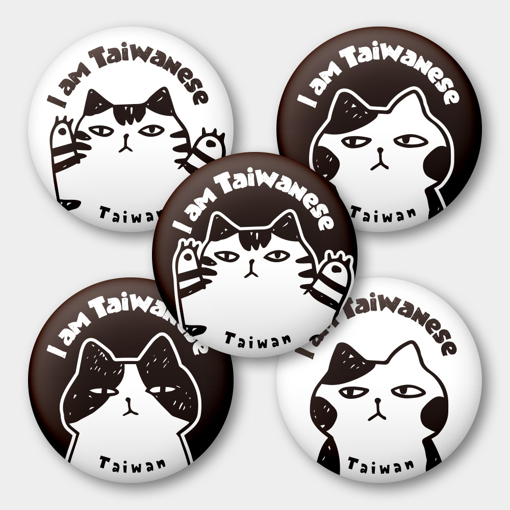 出國必備!我是台灣人 厭世貓 58mm 胸章 磁鐵 鑰匙圈 5 件套組