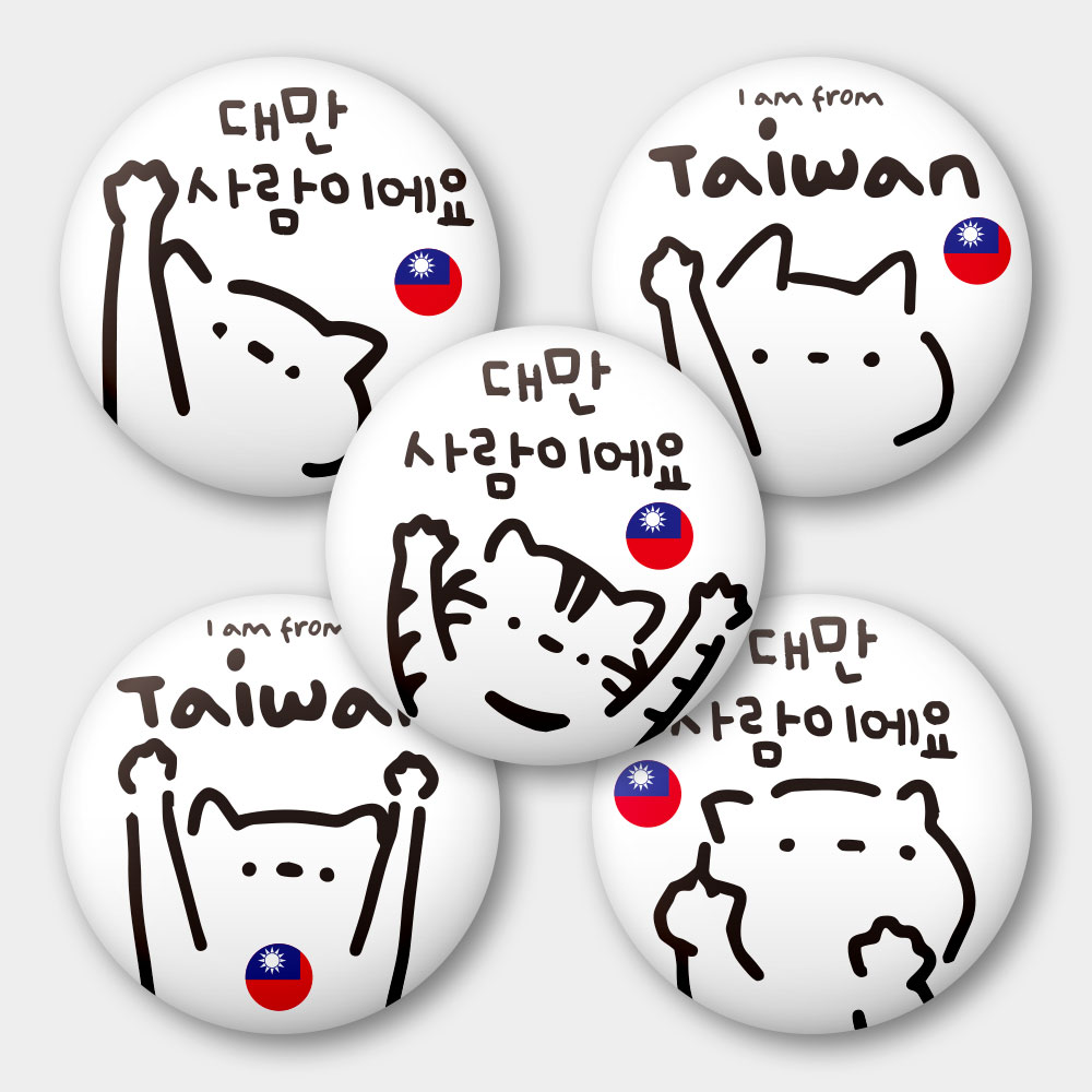 出國必備!我是台灣人 貓咪 58mm 胸章 5 件套組