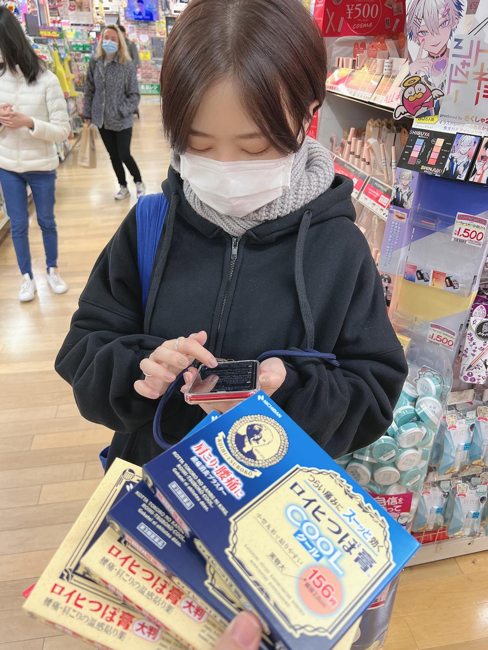 唐吉訶德賣的ROIHI-TSUBOKP酸痛貼布消除疲勞非常有效,藍色是涼感、黃色是熱感,第一天就可以先買起來一定會用到,滿日幣5500可以在藥品專用櫃台退稅