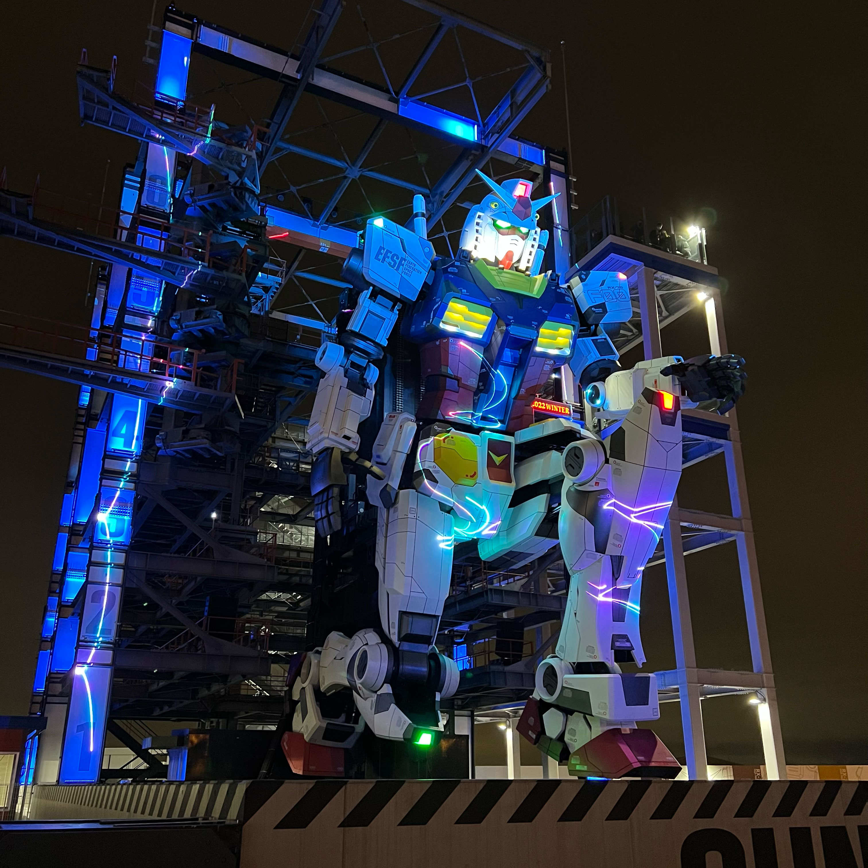 夜晚的橫濱海風真的非常冷,但看到大佛鋼彈動起來還是非常的感動,建議可以下午四點左右進場,可以看白天和夜晚燈光不同的燈光效果,請留意官網公告的燈光秀節目表,不同的時段表演的節目都不一樣,不過因為是臨時搭建的場地,無法做長期的展出,即將在2023年3月拆除,如果還有時間可以去搭跨海空中纜車