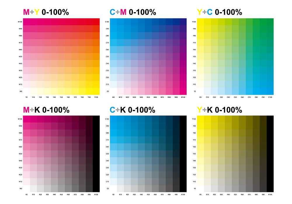 過去傳統四色印刷會把彩色拆成CMYK四個色版,透過網點密度疊出不同的色彩,在還沒有數位印刷的年代非常依賴CMYK演色表,設計師根據演色表的數值標示,製版廠再將根據標示輸出網片,所以每當打樣出來顏色有問題時,都會拿放大鏡去比對網點的大小來判斷是否製版做錯,若已上印刷機就只能請師傅用人工的方式加重油墨來調色,但通常只能救10%,這也是為什麼合版印刷無法調色的原因。