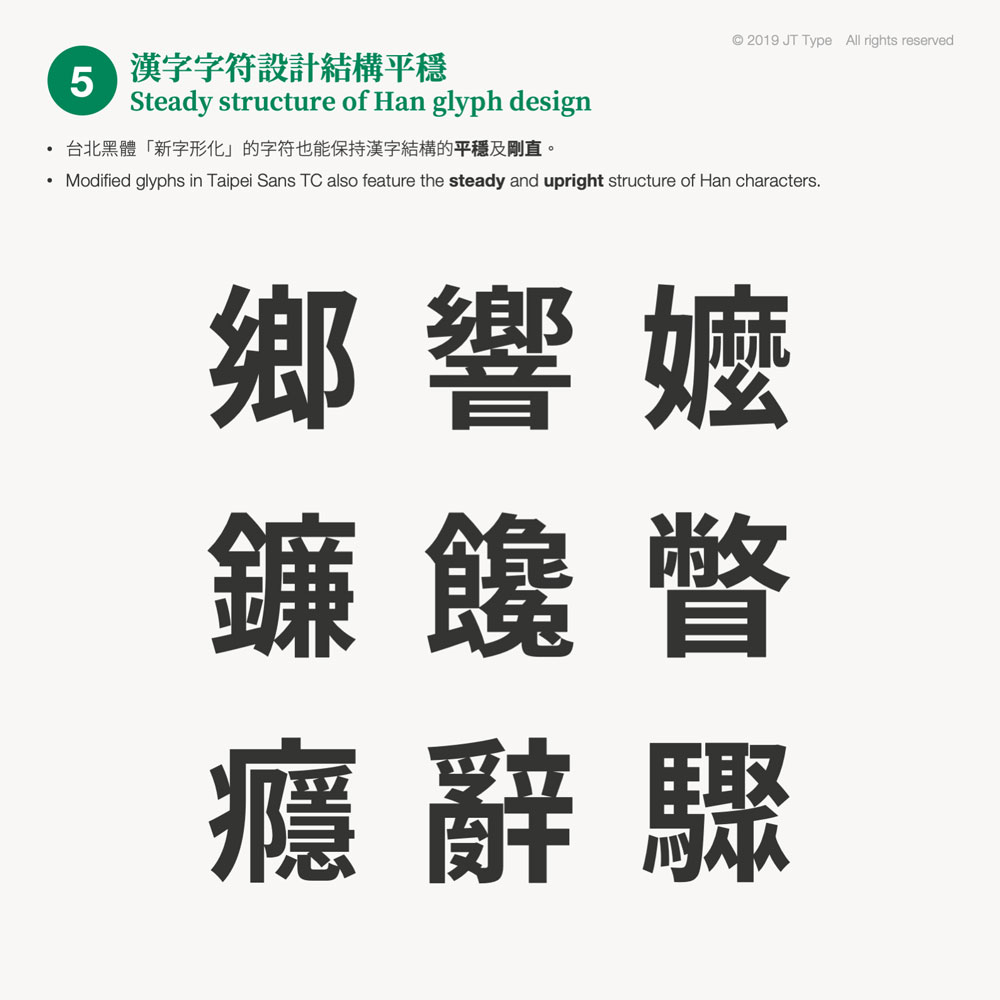 這套台北黑體與Google推出的思源黑體最大的不同,當然就是更符合台灣習慣的筆畫結構,細微之處與日本、韓國、香港、中國的漢字有許多不同,非常適合對字體很挑惕的設計師,甚至個人認為比其他商用字體更好看,最重要的是不只免費還可以商用,而且有七個字重,已經足以應付所有的設計需求了,推薦給大家!