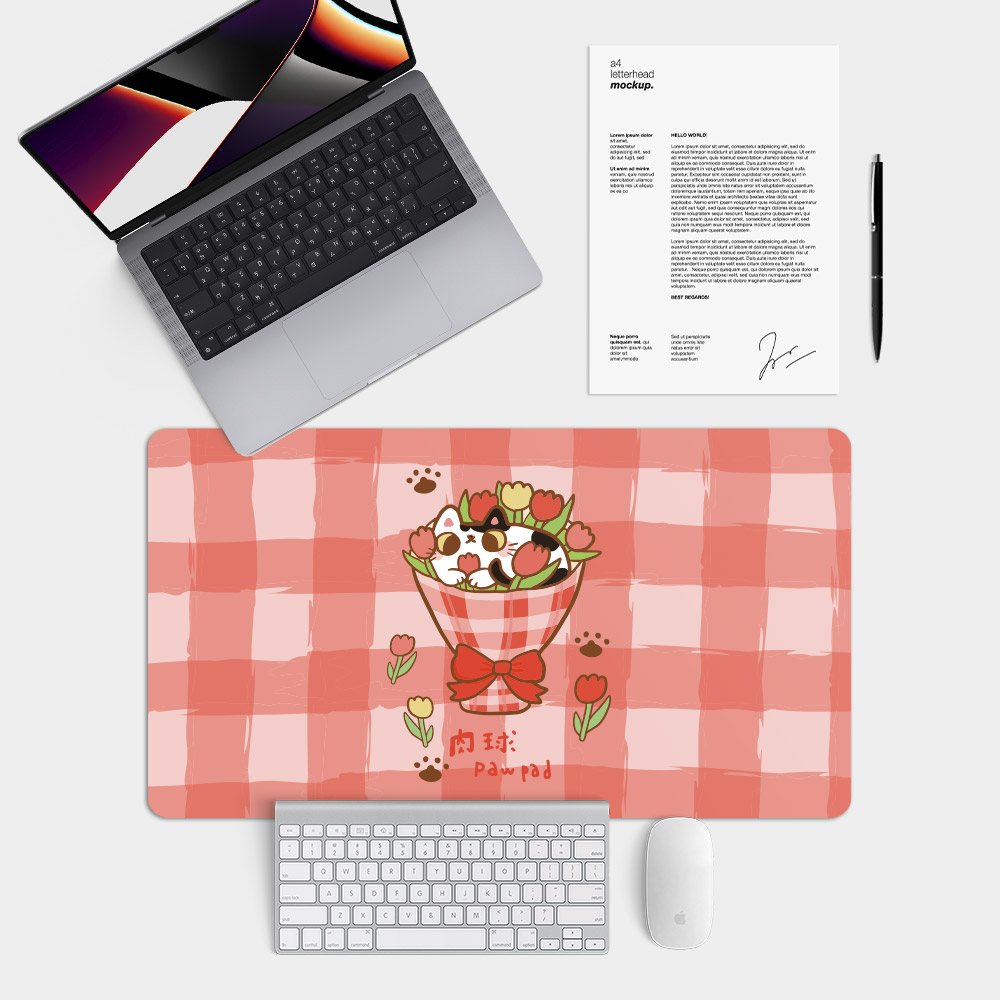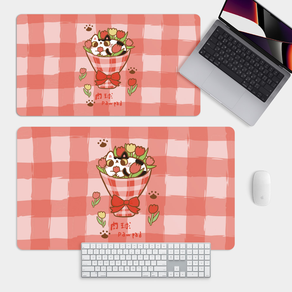 花貓紅格 台灣製大尺寸電競滑鼠墊 遊戲辦公最佳良品