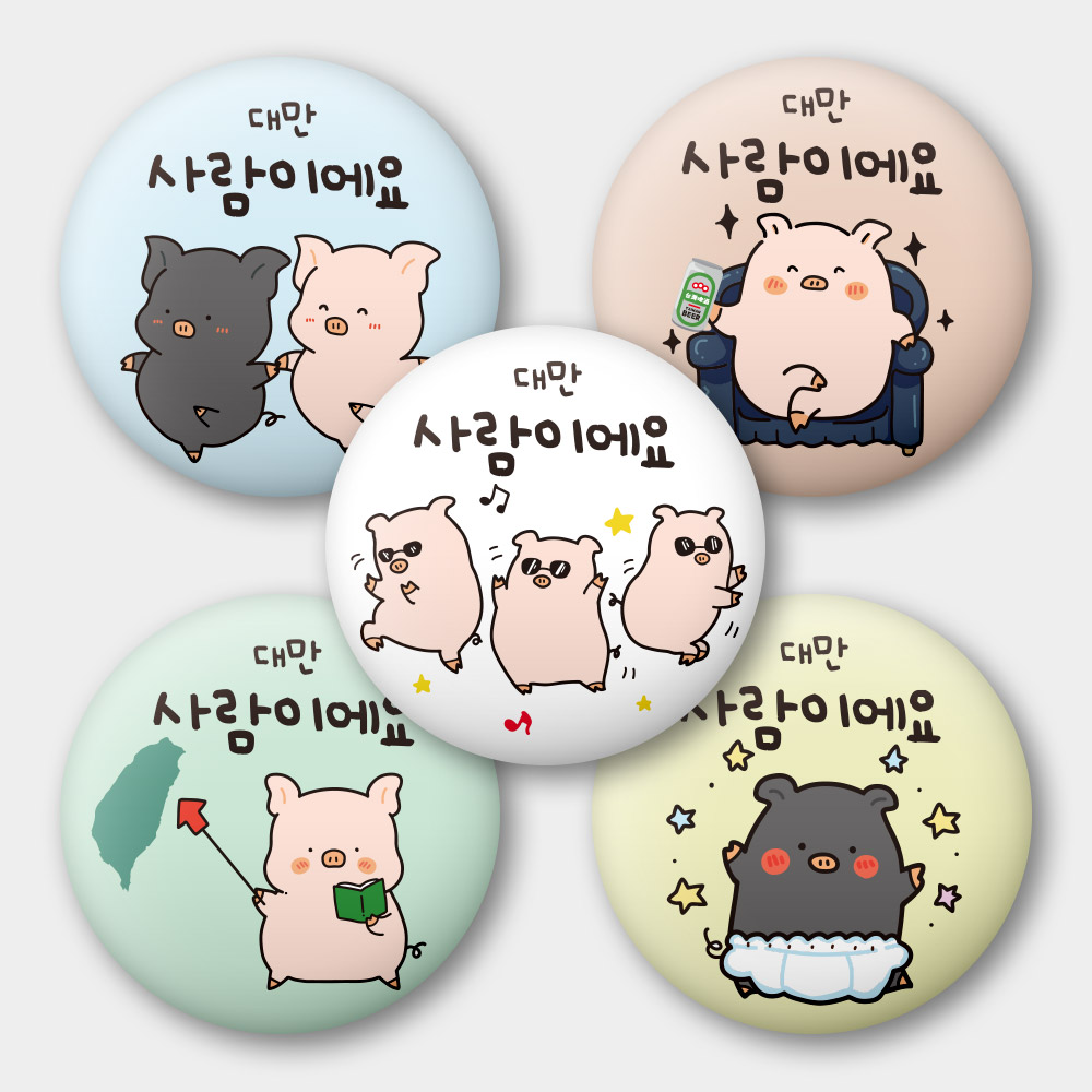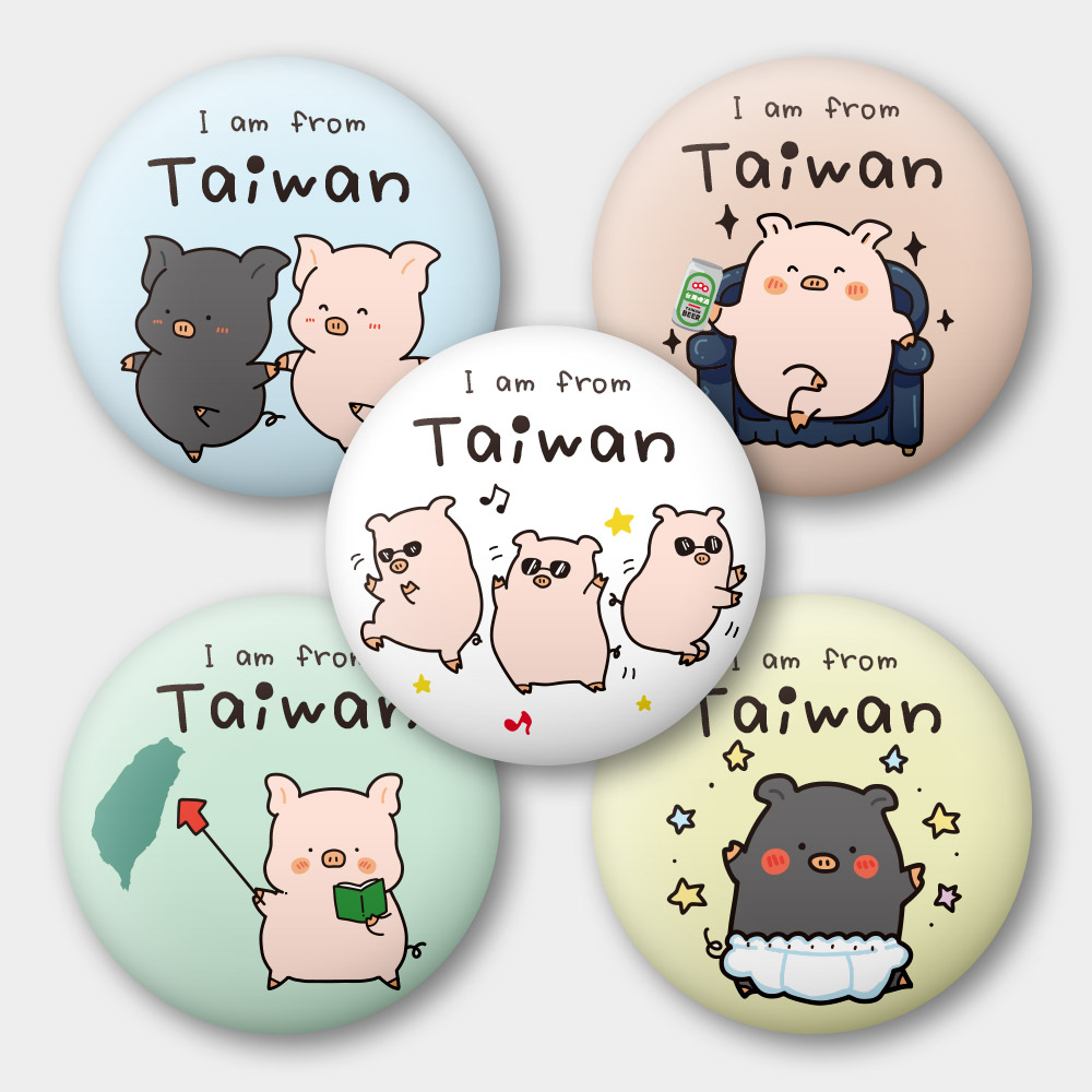 出國必備!我是台灣人 小豬 58mm 胸章 磁鐵 鑰匙圈 5 件套組