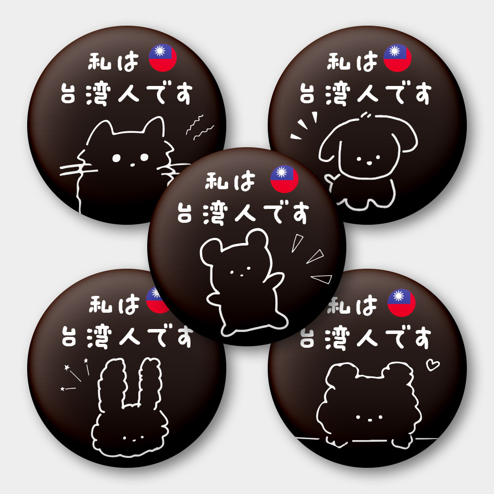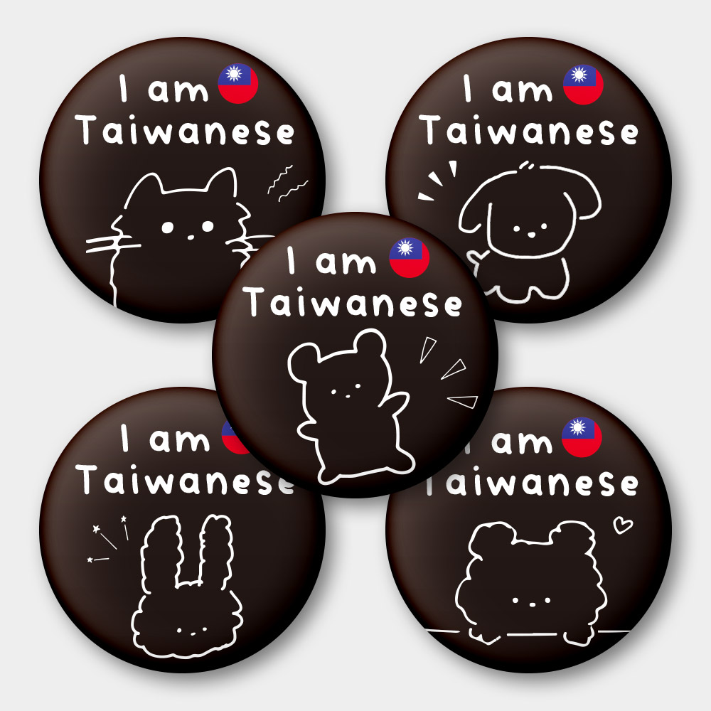 出國必備!我是台灣人 可愛動物 58mm 胸章 磁鐵 鑰匙圈 5 件套組