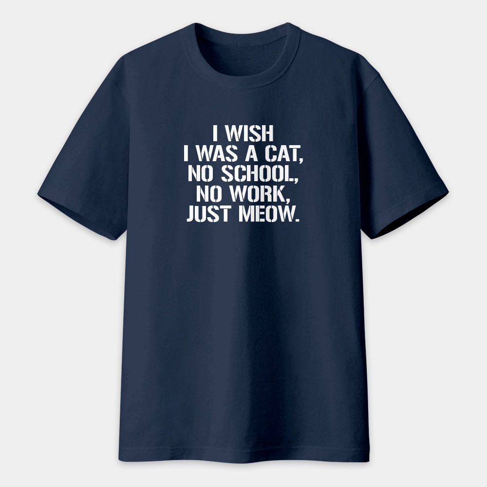 I WISH I WAS A CAT, NO SCHOOL, NO WORK, JUST MEOW.