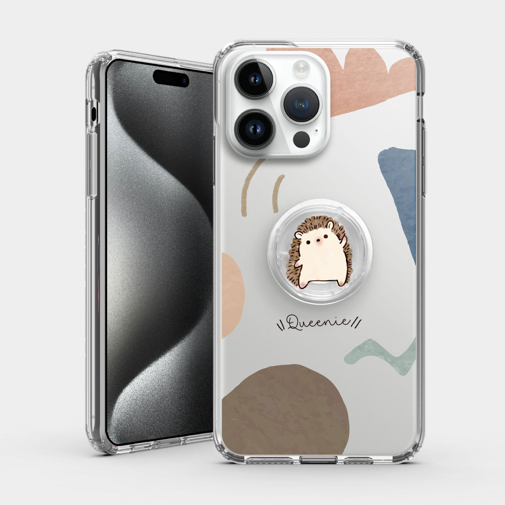 客製化英文名 刺蝟招手 手機殼+空氣支架