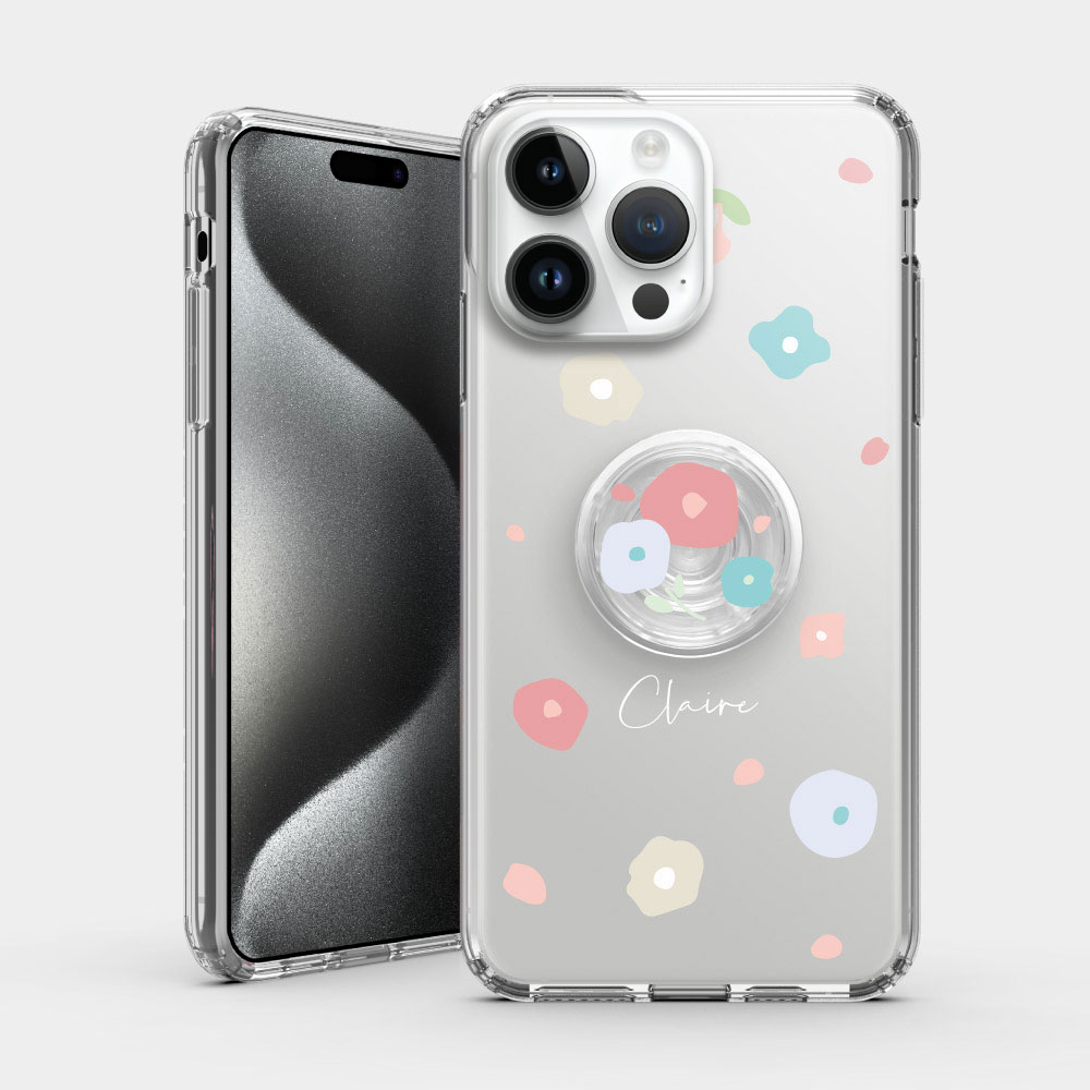 客製化英文名 淡粉花 手機殼+空氣支架