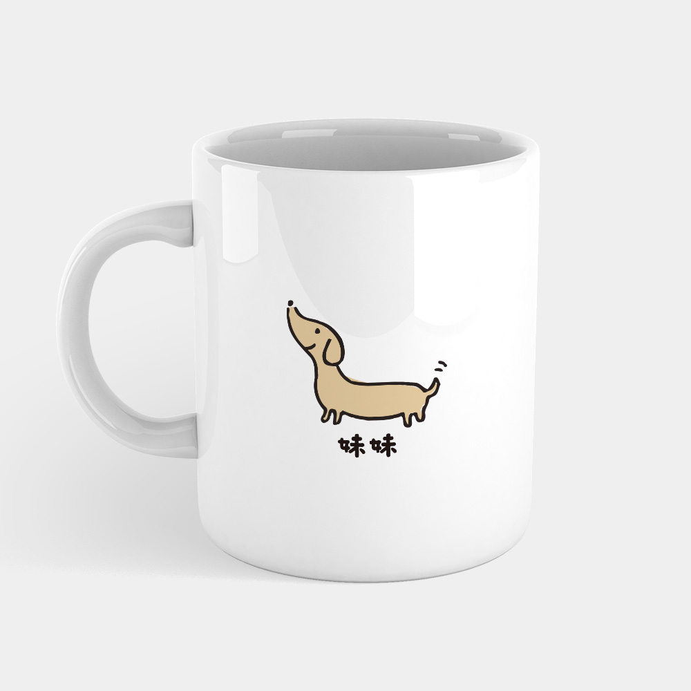 ◎下單時請備註要印刷的文字(中英文皆可)、臘腸狗顏色(奶油、咖啡、灰色、紅色),馬克杯及杯墊可不同顏色的臘腸狗。