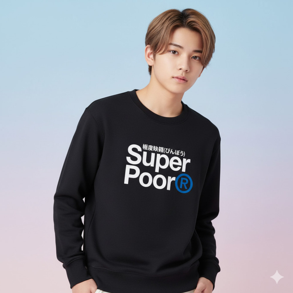 極度缺錢 Super Poor 日本 Printstar 純棉大學 TEE 黑白灰藏青 8 種尺寸