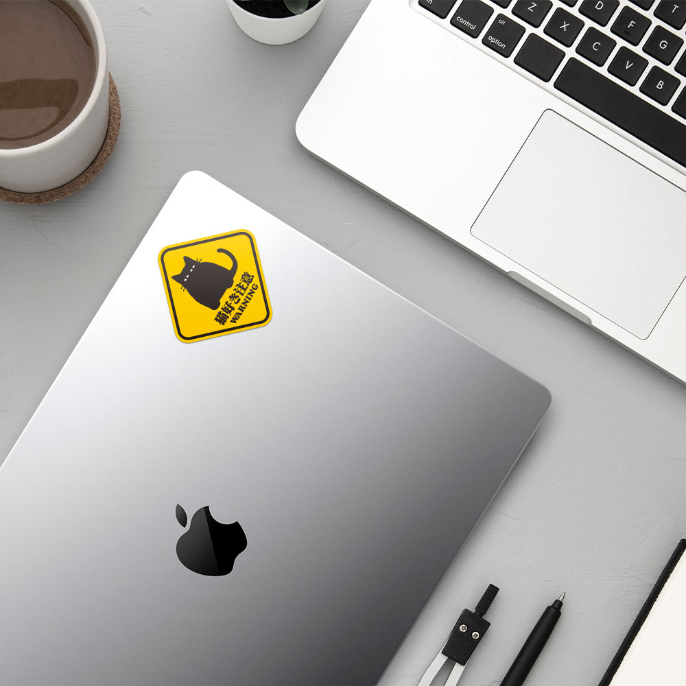 貓好き注意 行李箱 筆電 汽機車 PVC 防水貼紙