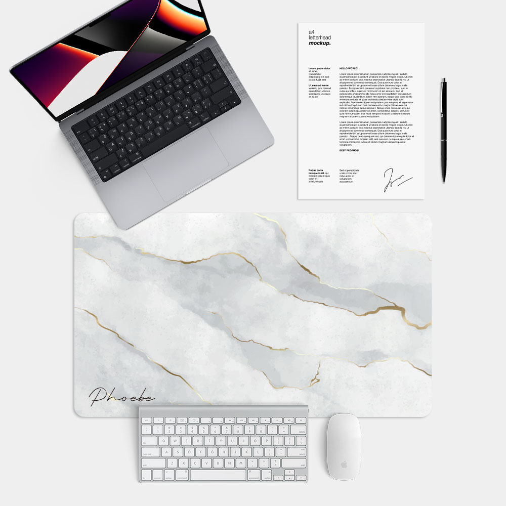 客製化英文名 仿金邊大理石 台灣製大尺寸電競滑鼠墊 遊戲辦公最佳良品
