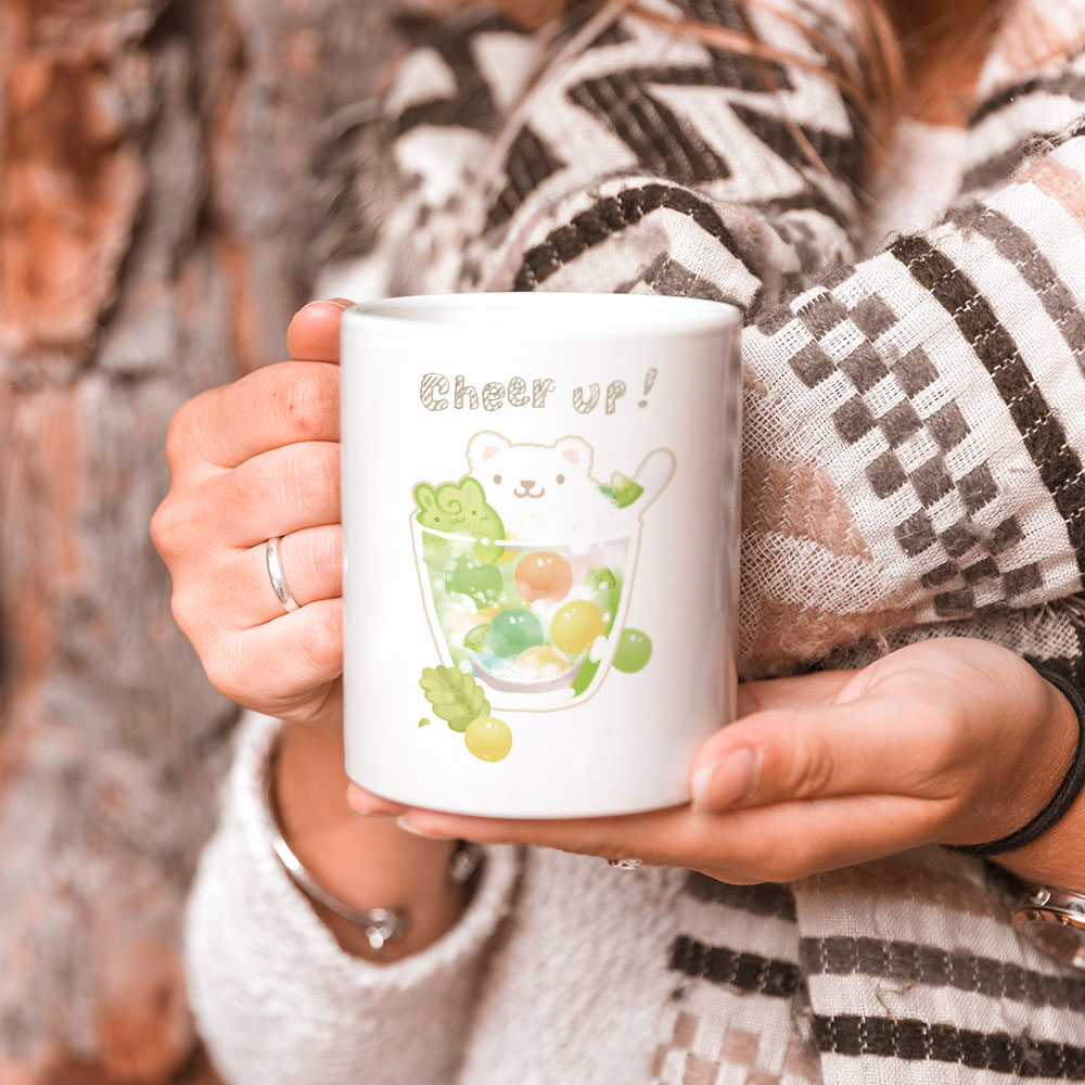 夏日冰球飲料 - 白熊奇異果特調 馬克杯+杯墊組 聖誕 生日 畢業 最佳交換禮物