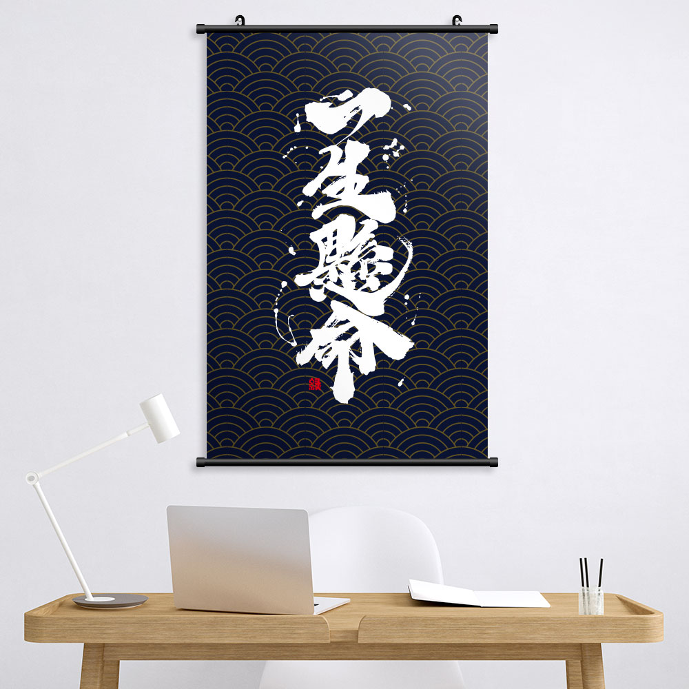一生懸命書法 海報掛軸 布幔 浴巾 運動毛巾 居家 辦公室佈置