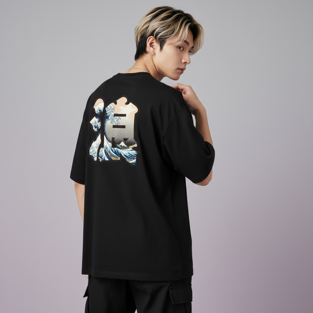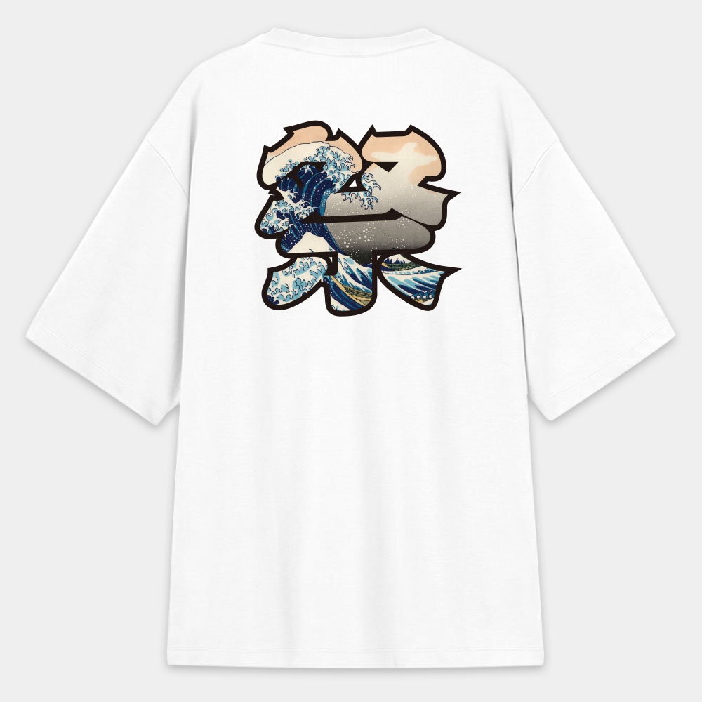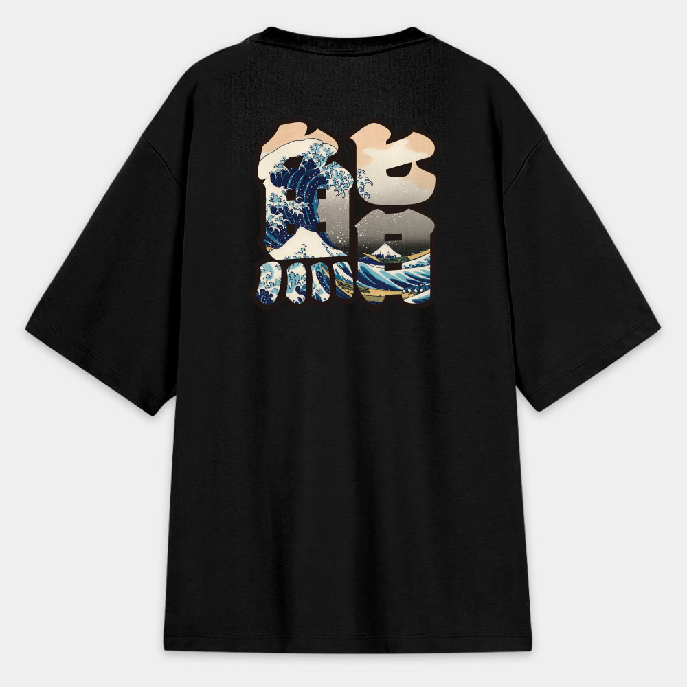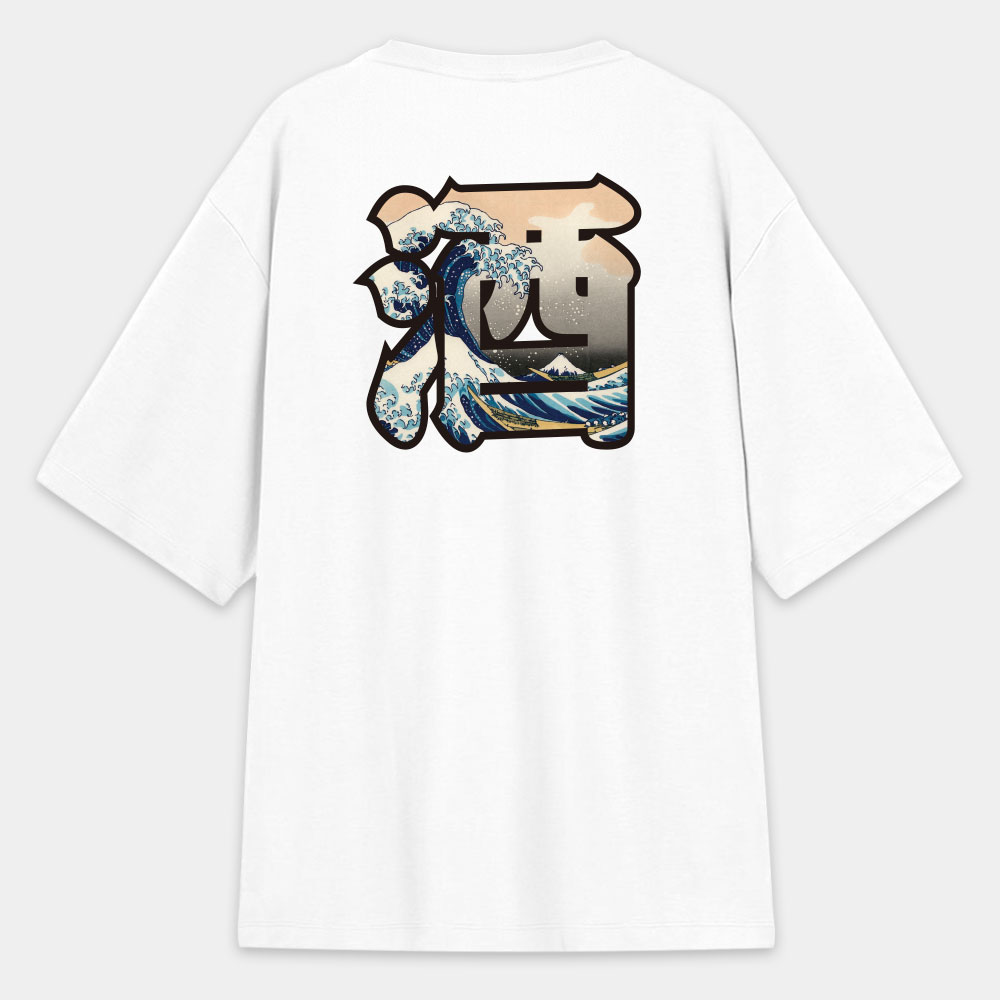 浪 波 潮 酒 客製化浮世繪文字(圖在背面) 日本 Printstar 韓版落肩 T-shirt 共 4 種尺寸
