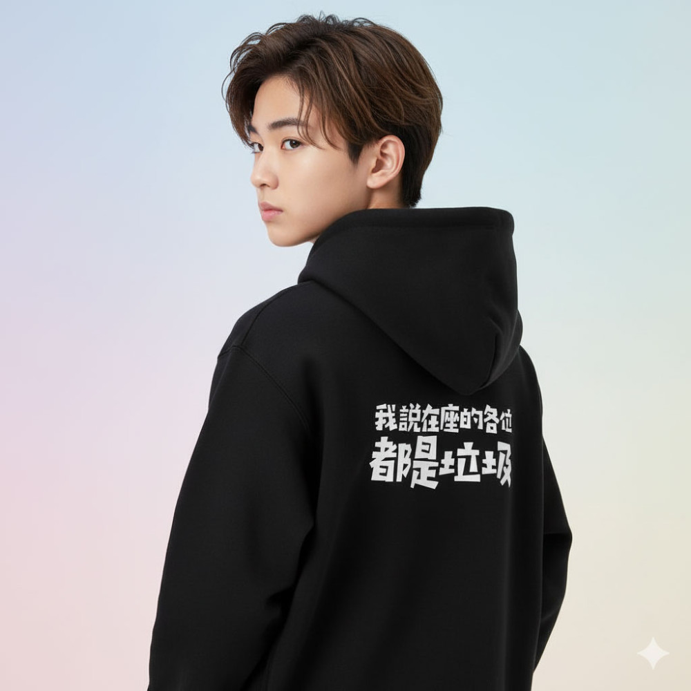 - 商品示意圖不含拍攝之道具,印刷尺寸為固定大小,在不同尺寸的衣服上比例會略有所不同,範例衣服尺寸為M僅供參考。